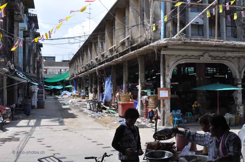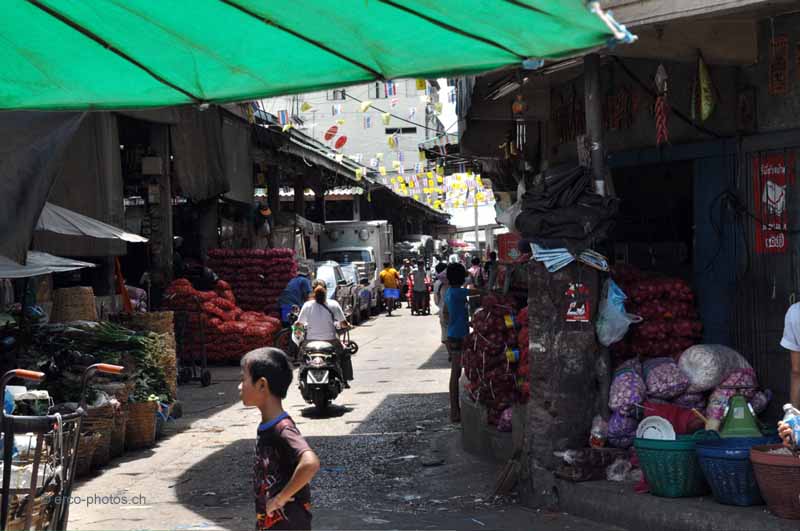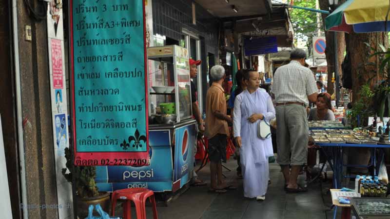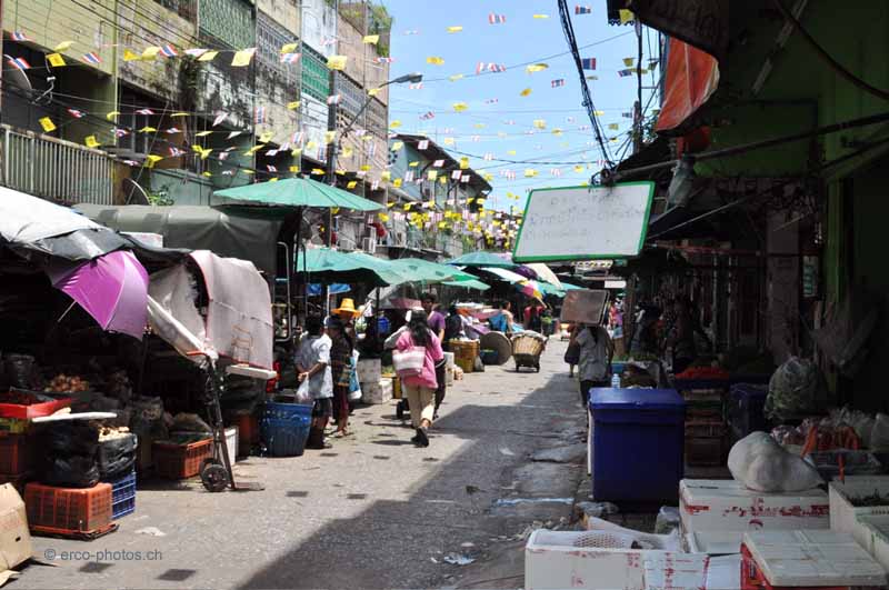 Aussi, je profite de vous faire découvrir quelques vues de Bangkok; ce qui me saute à l'oeil lors de mes déplacement dans cette immense fourmilière (11'500'000 à 18'000'000 h.). Vous remarquerez que je m'aventure souvent dans des ruelles où je ne croise pas trop de touriste. Vous verrez quelques photos du marché des fleurs; mais vous n'aurez pas l'odeur.