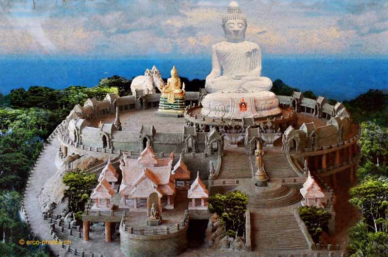 Voici, à nouveau, quelques images de mes ballades: village Moklens, marché. Puis, je suis monté sur une colline sur laquelle est érigé le "Big Bouddha", statue de 45 m. de hauteur qui se voit depuis presque toute l'île. Le panorama est fabuleux, très cartes postales. Ensuite visite du plus grand temple de Phuket à Chalong.