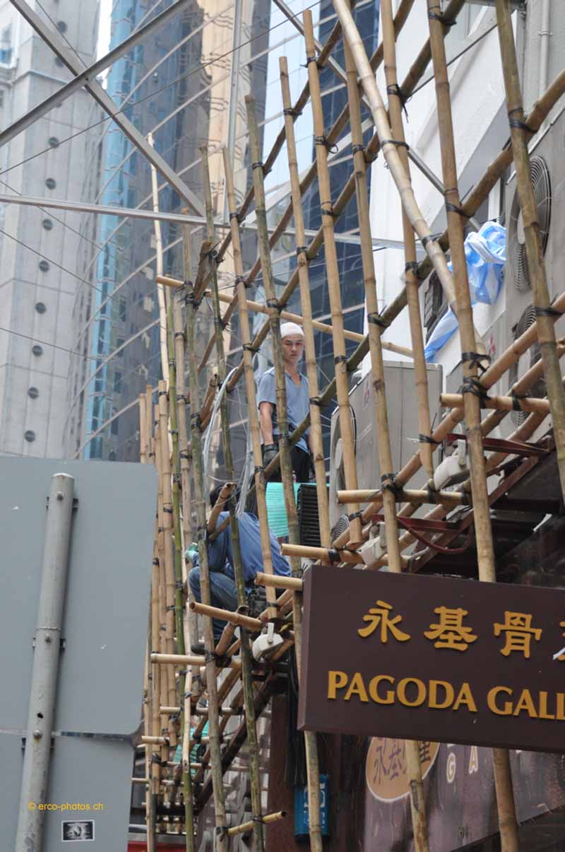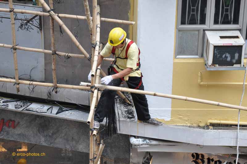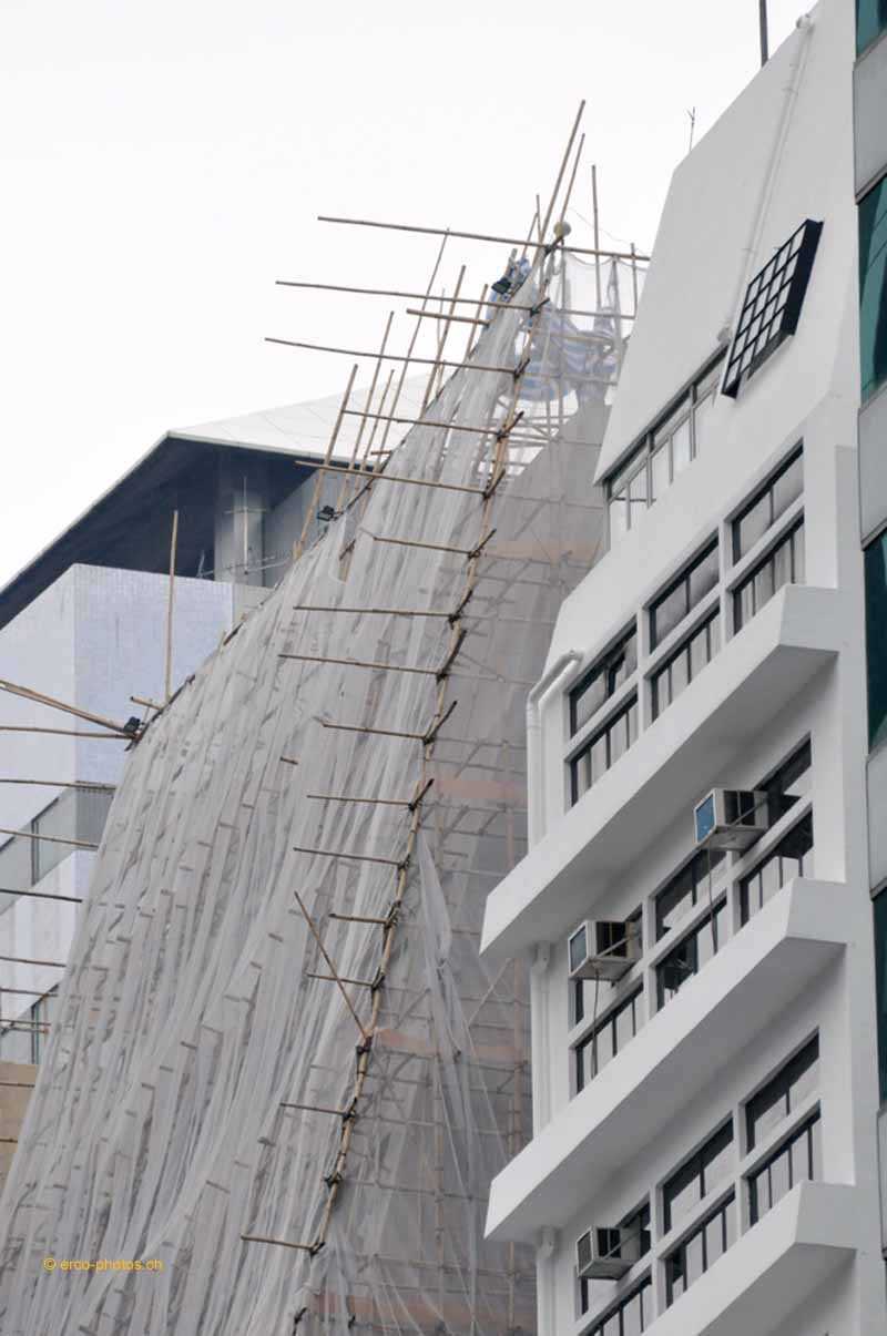 Ce qui m'a impressionné à Hongkong ce sont ces immenses buildings modernes dans leur architecture et ces simples tiges de bambou nouées ensemble, par de vrais acrobates, pour faire les échafaudages. Et ça à l'air de tenir !