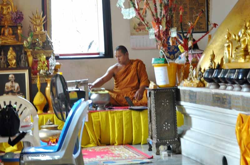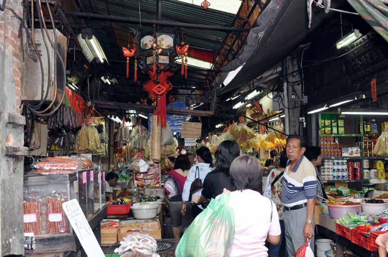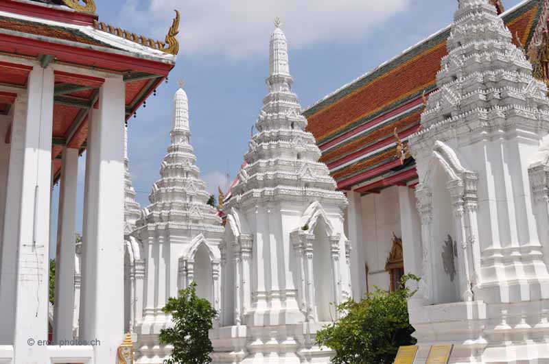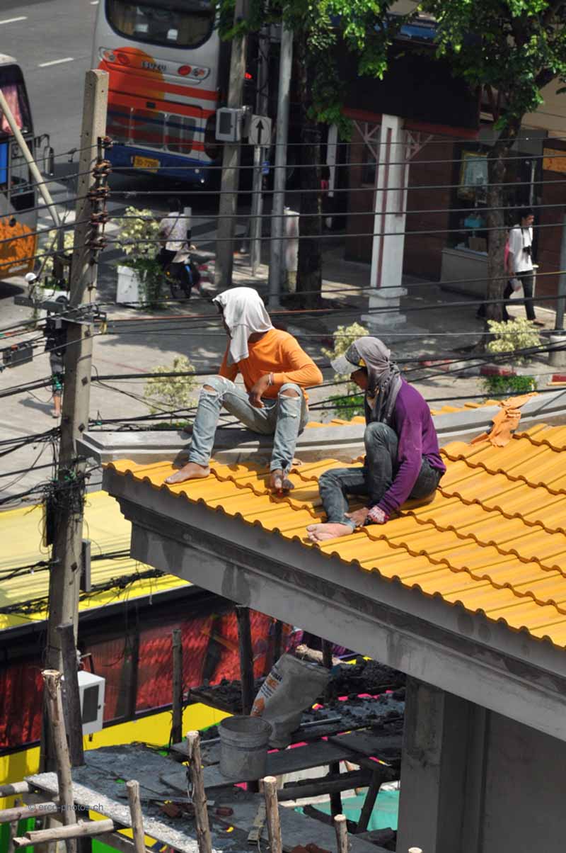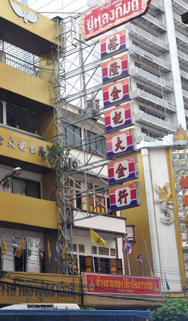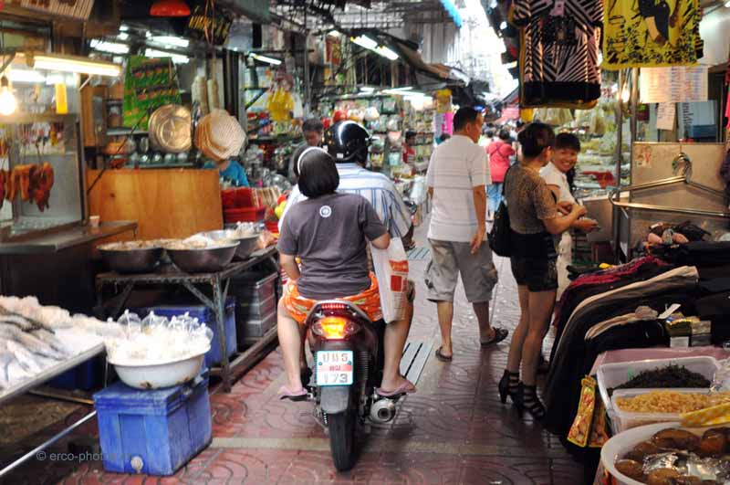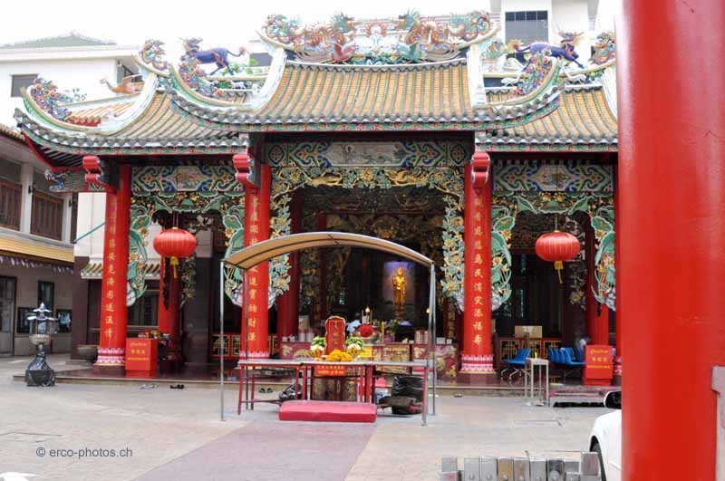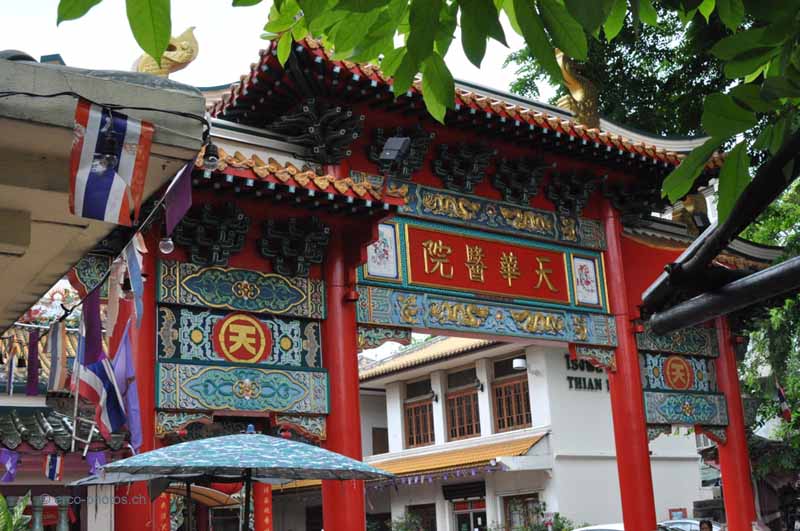 Après ma ballade sur le fleuve et ne pouvant pas visiter le Palais royal (je n'avais pas d'invitation - Un oubli peut-être? - pour une cérémonie de je ne sais quelle commémoration). Je me suis rabattu sur China Town. Bien que pour nous l'Asie c'est l'Asie, quand vous entrez dans le quartier chinois vous avez vraiment l'impression d'avoir changé de pays. L'écriture sur les enseignes de magasins, la marchandise qui s'y vend, la nourriture préparée par les petits cuistots des rues, l'architecture des temples, tout est différent. Seuls le brouhaha et la circulation sont identiques. Ah! et j'oubliais... les fils électriques également.