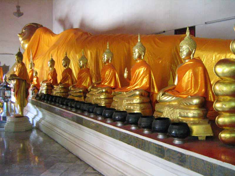 Avant de d'aller à China Town j'ai visité un Bouddha fainéant: le Wat Pho. Une statue 45 mètres de long et 15 mètres de haut, aux pieds incrustés de nacre représentant les 108 états de Bouddha.