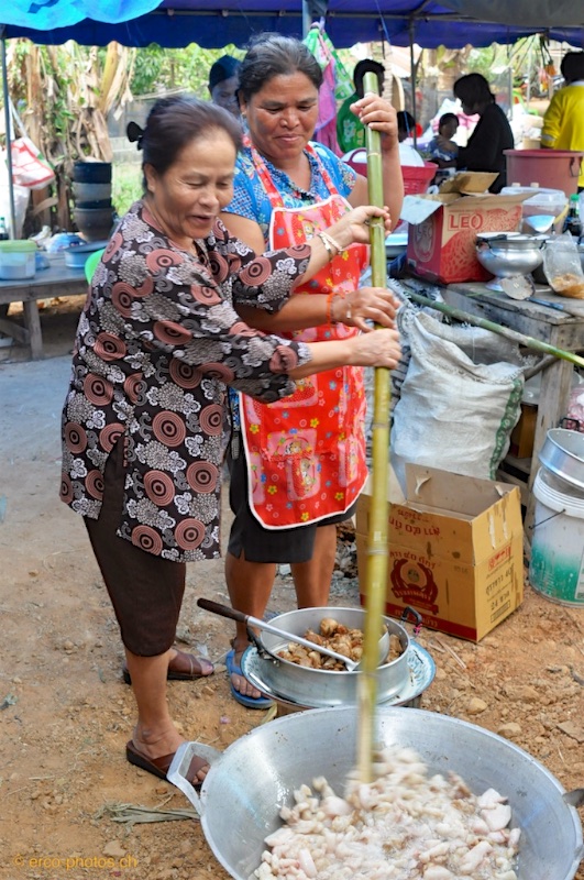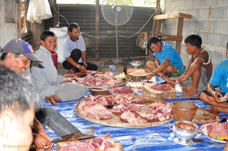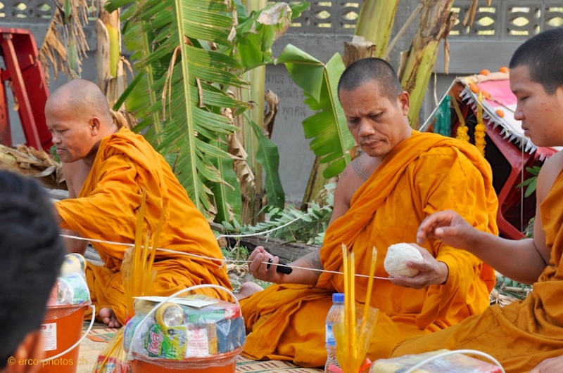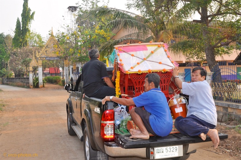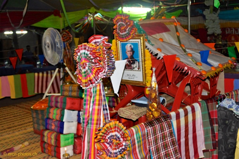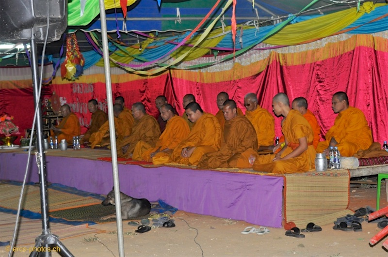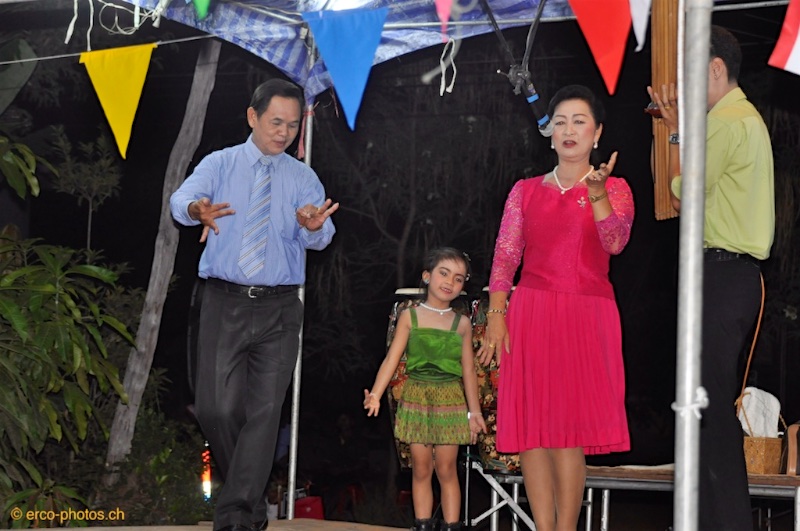 Pour agrémenter cette veillée, un musicien aveugle accompagné d'un chanteur, à la voix de baryton, ont interprété, jusque tard dans la nuit, tous les classiques de la musique Isan. L'épouse du chanteur ainsi que leur fille ont assuré la chorégraphie des chants. Après quelques morceaux, je me suis rendu sur ma natte espérant dormir, mais la sono m'obligea d'écouter tout le répertoire.