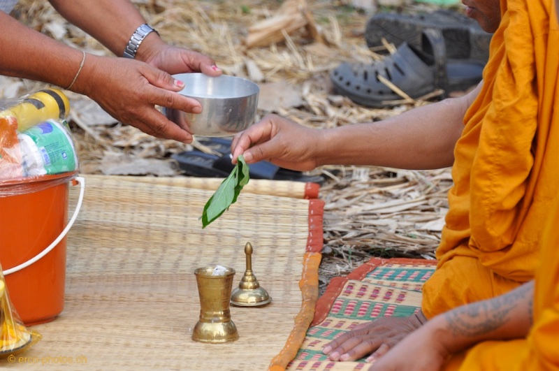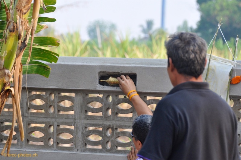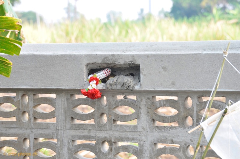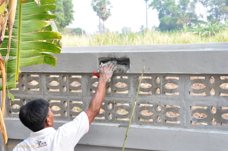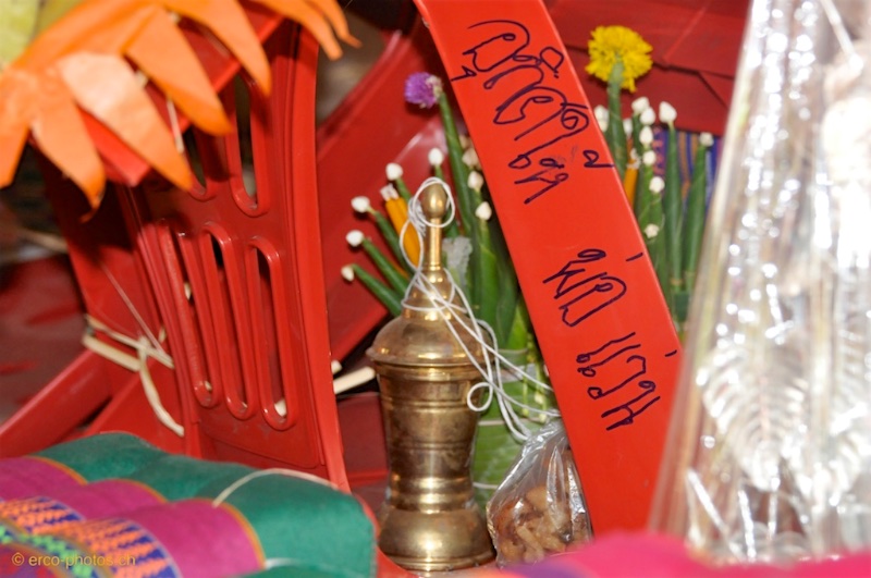 Une année et demi après les 4 jours de cérémonie pour la crémation de mon beau-père, la famille et beaucoup d'amis sont venus, déjà la veille, pour une cérémonie d'un jour afin de celler l'urne dans le mur d'enceinte du temple.