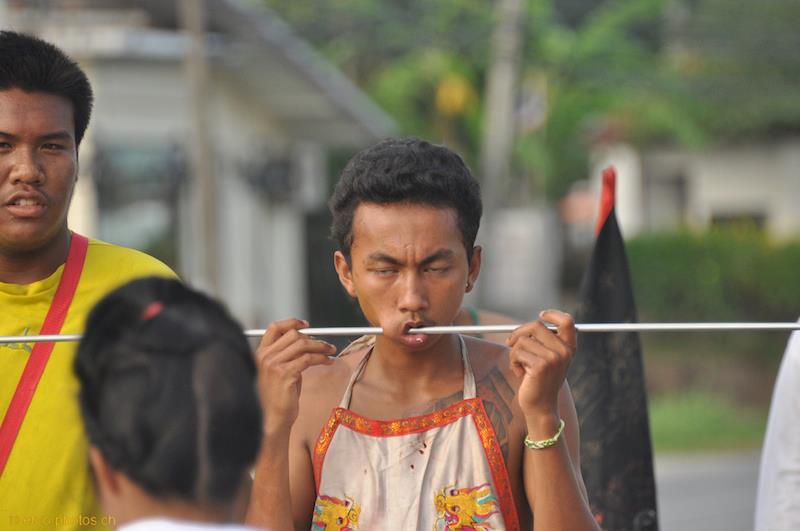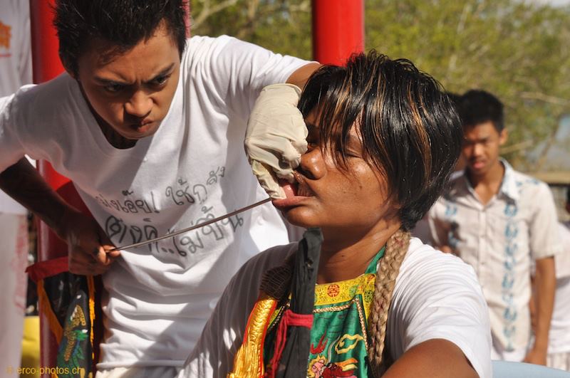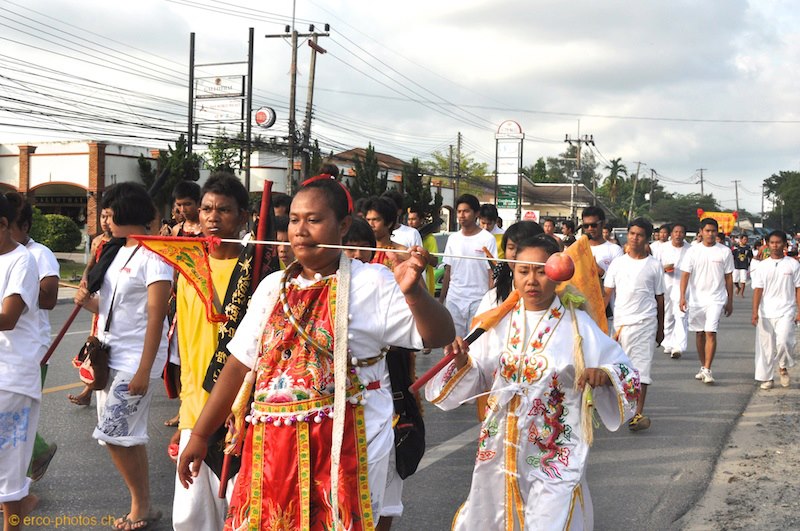 Le festival a gagné une réputation dans le monde entier non seulement pour sa délicieuse et authentique alimentation végétarienne, mais aussi pour ses longs défilés accompagnés de beaucoup de pétards et dirigés par un Masong, une personne possédée par les divinités et capable d'infliger des mutilations physiques, le plus souvent sous forme de piercing des joues avec un objet pointu, comme une lame ou une épée.