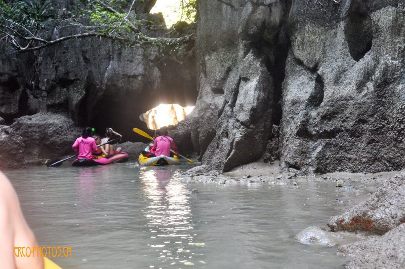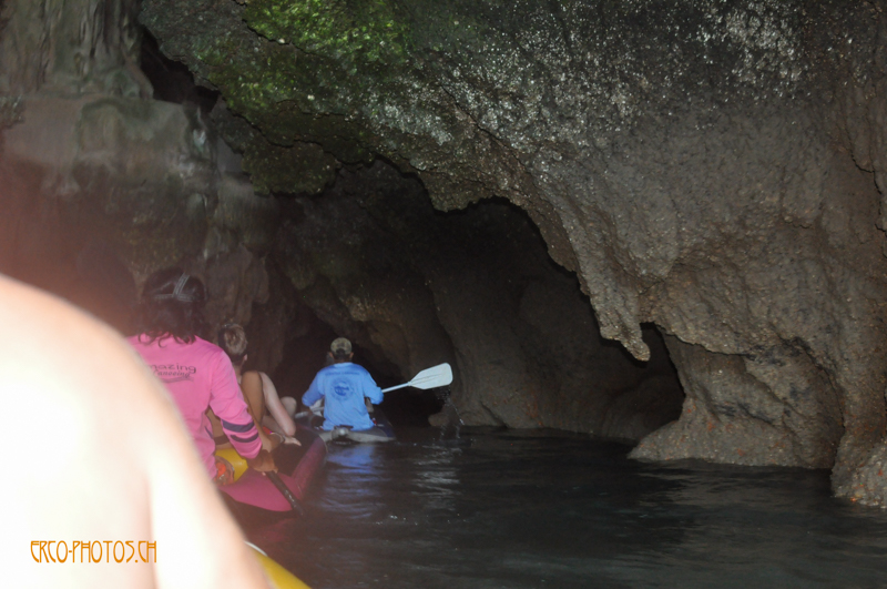 Cette excursion d'une journée est complétée par des visites, en kayak, de divers lagons que l'on rejoint par des basses grottes. Il est parfois nécessaires de se coucher dans le kayak pour ne pas se heurter la tête contre les rochers.