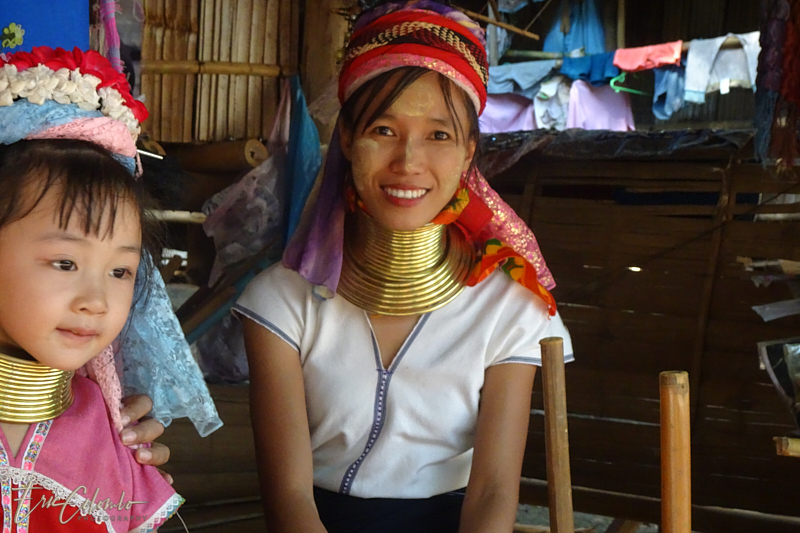 - Les Karen "Long cou" est l'une des tribus Karen. Ils s'appellent Padaung. On pense qu'ils sont originaires de la province du Yunnan, en Chine centrale. Plus tard en 1000 après JC selon l'histoire, ils ont migré vers le bassin de la rivière Salween au Myanmar. En 1995, environ 25 000 Padaung vivaient au Myanmar. Ils vivent principalement des activités agricoles traditionnelles. Après un incident politique contre les minorités au Myanmar, les Padaungs ont quitté le Myanmar.