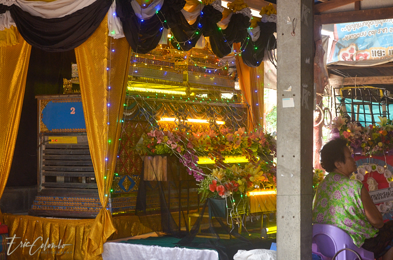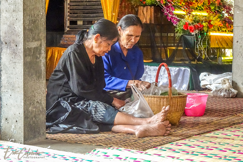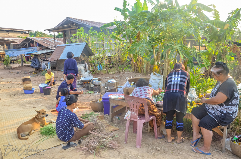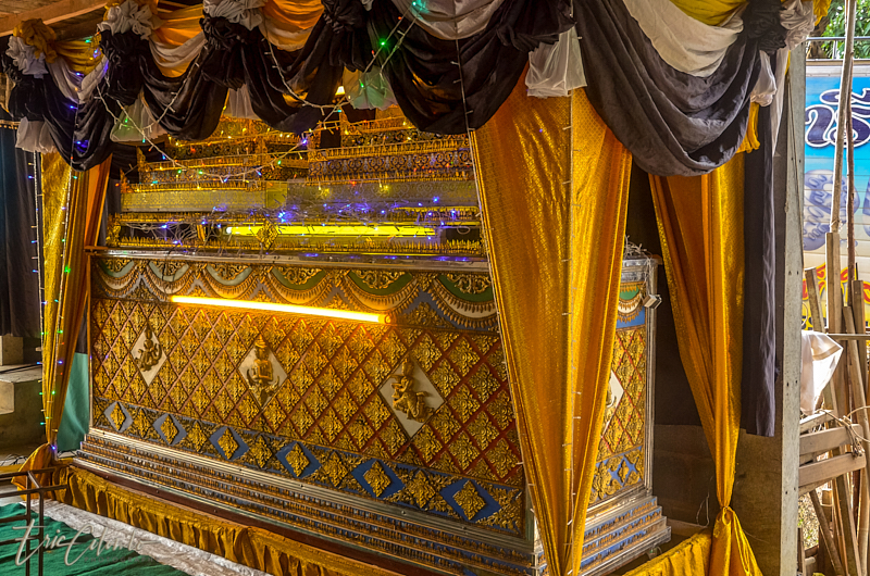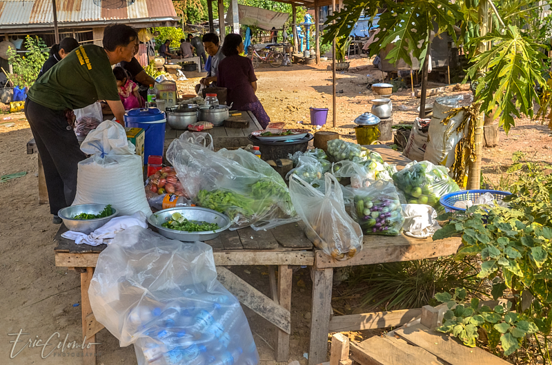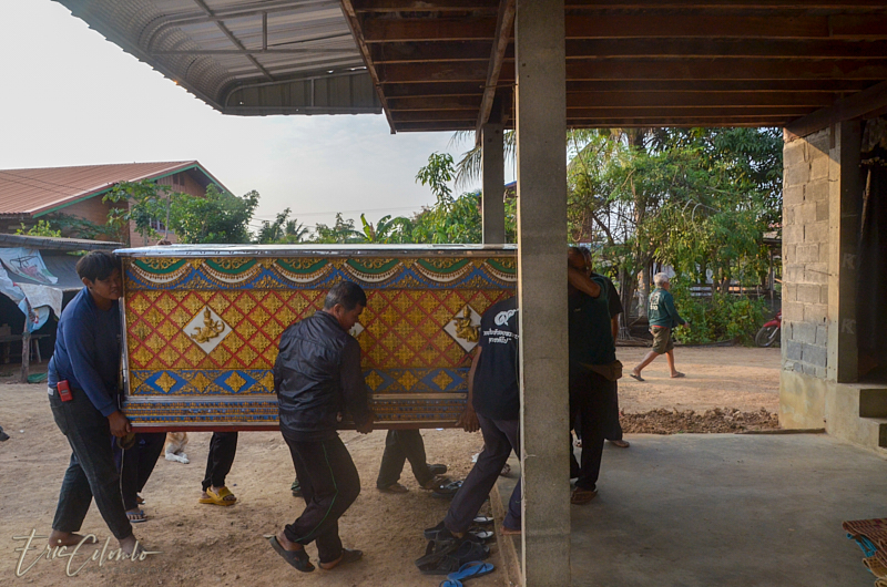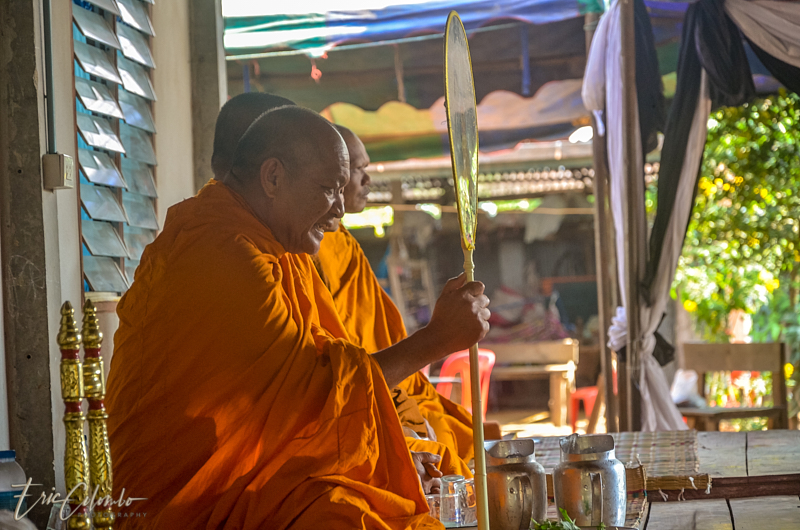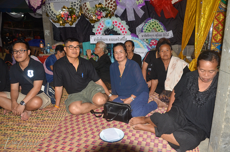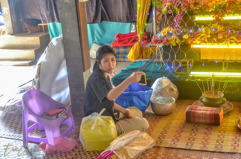 A l'extérieur, 7 ou 8 cantines sont installées et garnies de chaises et tables pour accueillir et nourrir les parents et amis qui viendront, au fil des jours, se recueillir et encenser le sarcophage et présenter leur cadeaux (riz, argent, couronne, etc) à la famille et aux moines qui seront là tous les soirs.