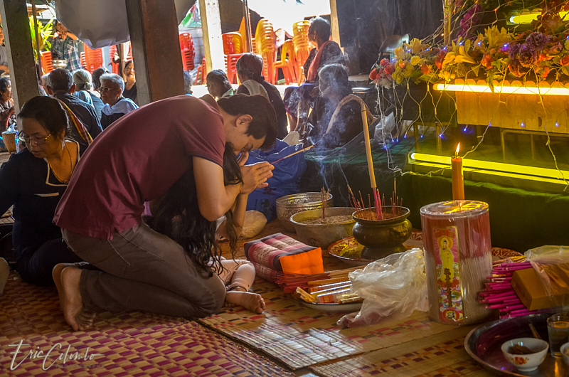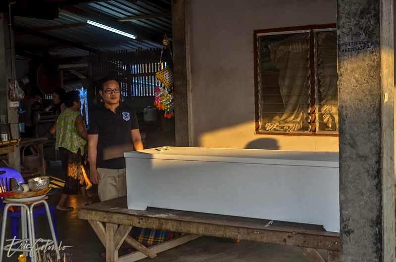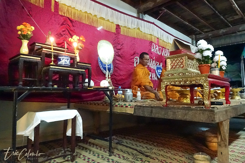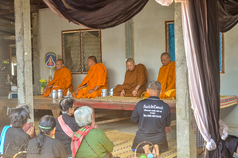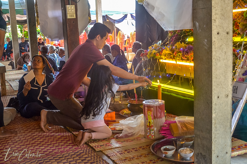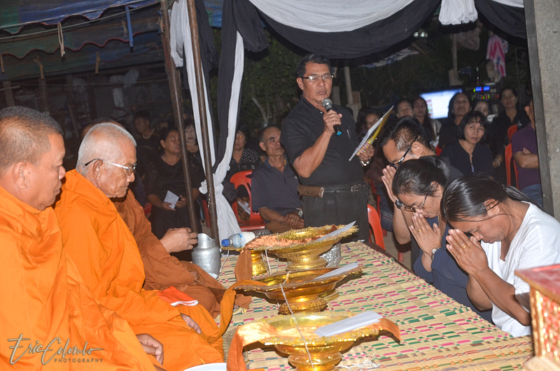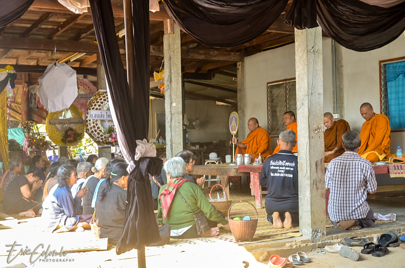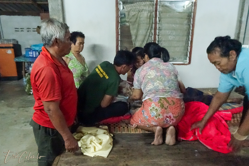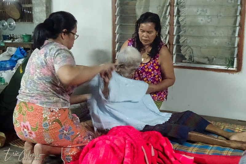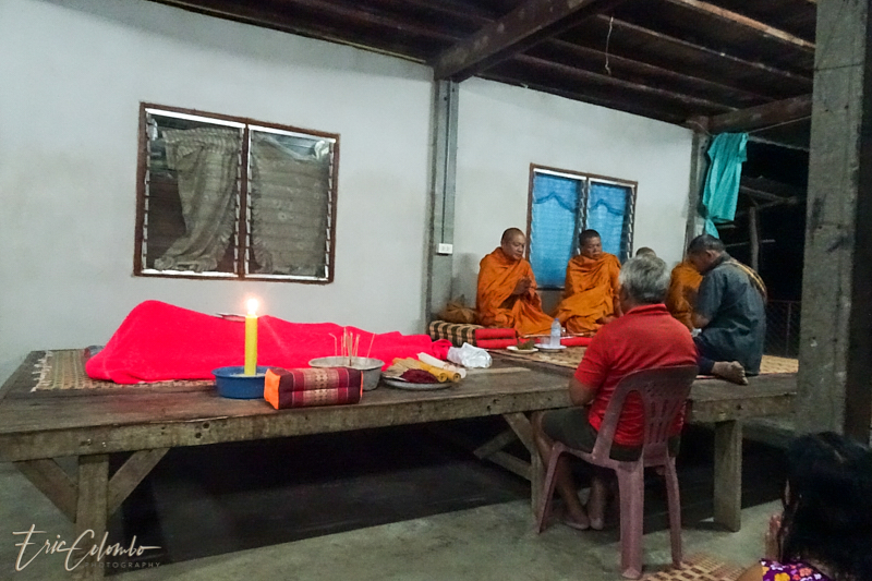 Vers minuit, 3 moines, informés par la famille, venaient prodiguer leurs prières auprès du corps déposé sur une natte et recouvert d'un drap.