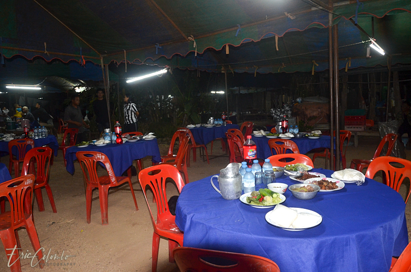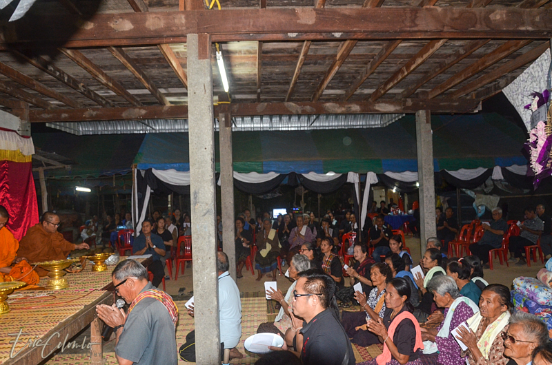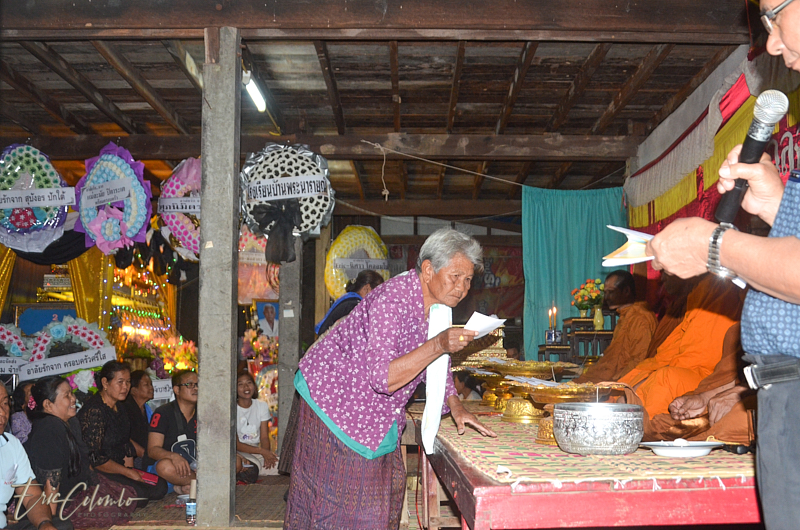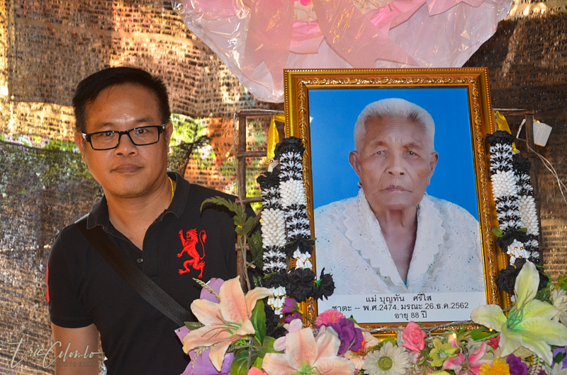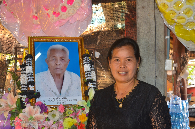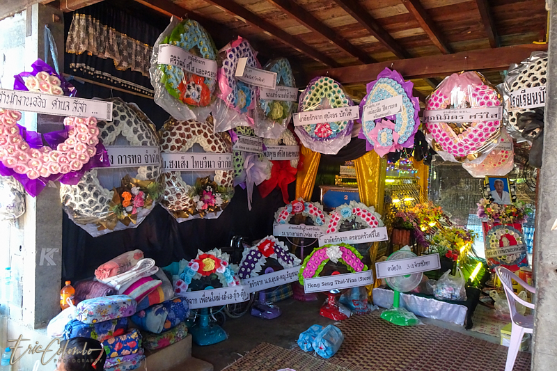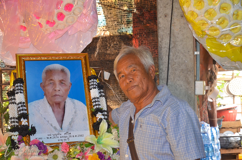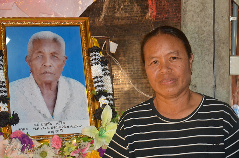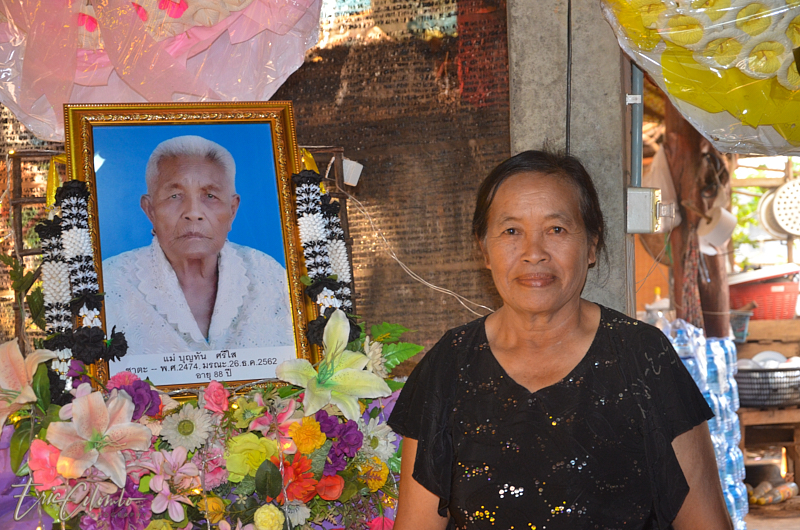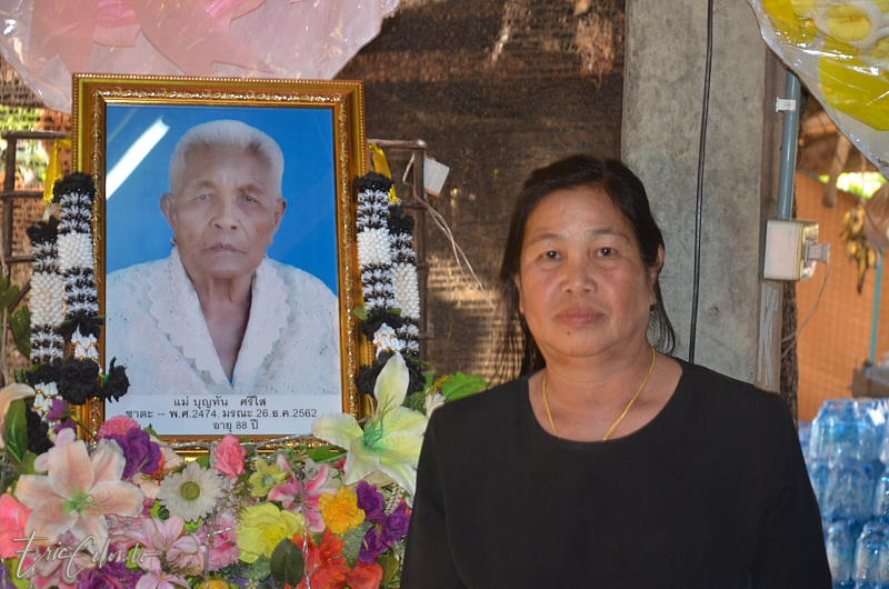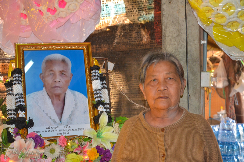 Le 2ème jour, toute la fraterie est complète. Tout au long de la journée il y a du monde pour la préparation des repas. Une des cantines a été dévolue pour la cuisine et beaucoup de villageoise viennent prêter main-forte à cette activité afin de laisser libre les proches pour recevoir les hommages des visiteurs. Il y a constamment une ou deux filles ou fils de la défunte près du cercueil pour recevoir le cadeaux et l'annoncer à leur mère du genre: "Tu vois la cousine de Bangkok à donné une enveloppe" ou "celle-ci à apporter un kilo de riz" tout en tapotant contre le frigo contenant le cercueil.