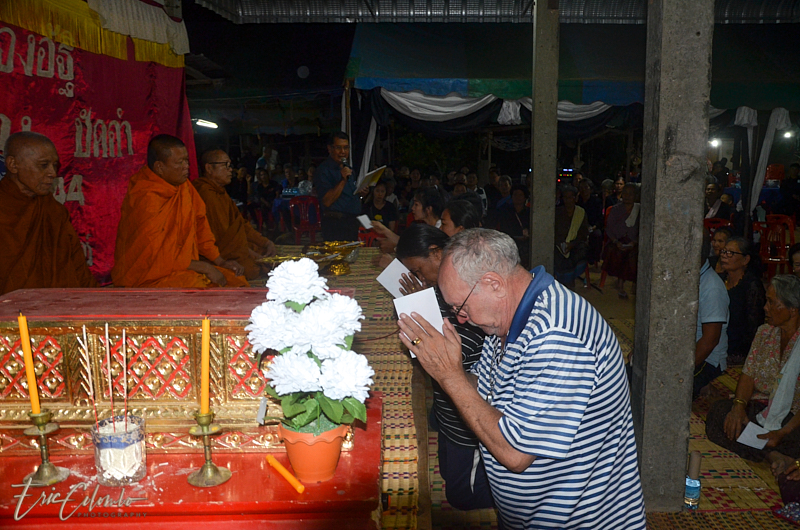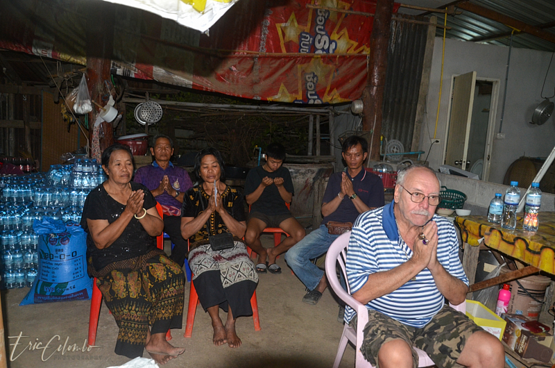 Chaque soir à 18 heures l'arrivée des moines est précédée par un nombre grandissant à chaque fois d'amis venus prier et faire don d'enveloppes contenant quelques billets de baht.