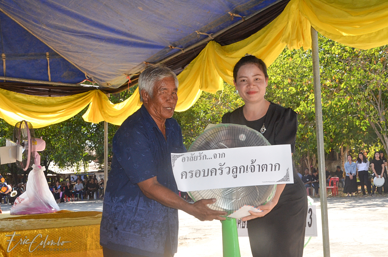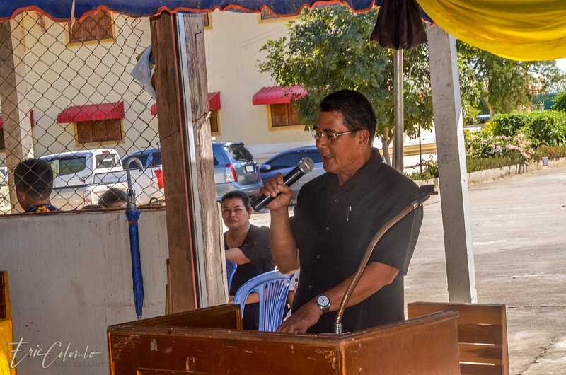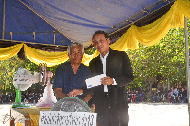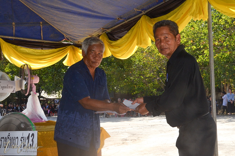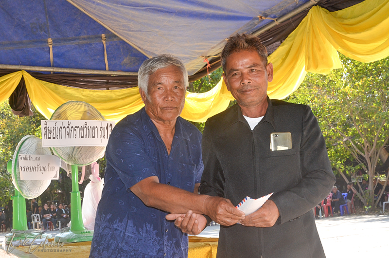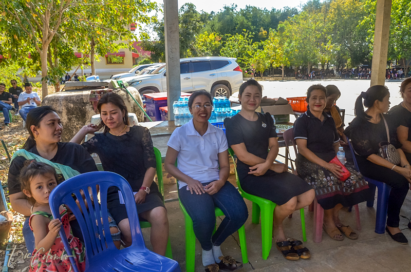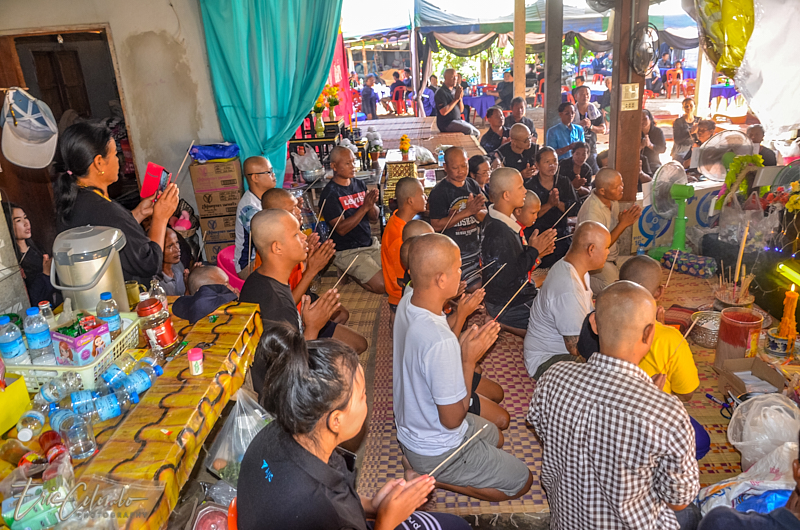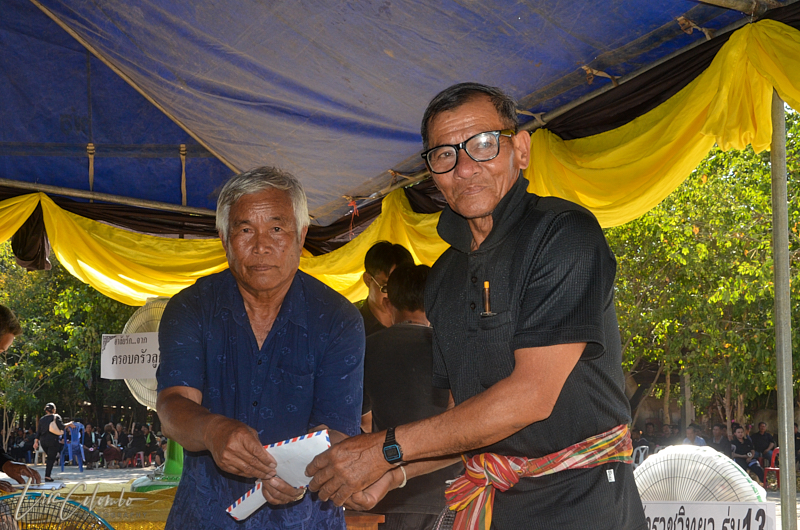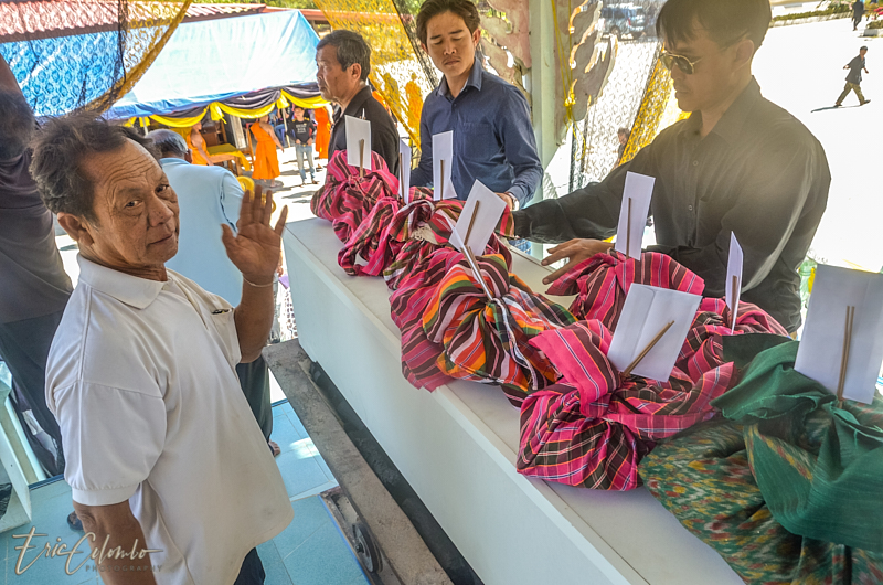 Tout le monde s'installe dans la grande salle de prière et c'est reparti pour les litanies entrecoupées de séances cadeaux. Toutefois les enveloppes sont données qu'aux vrais moines. La famille reçoit encore des cadeaux, spécialement des ventilateurs, qu'elle va partager avec les moines.