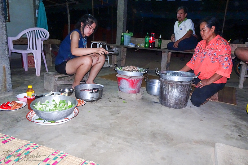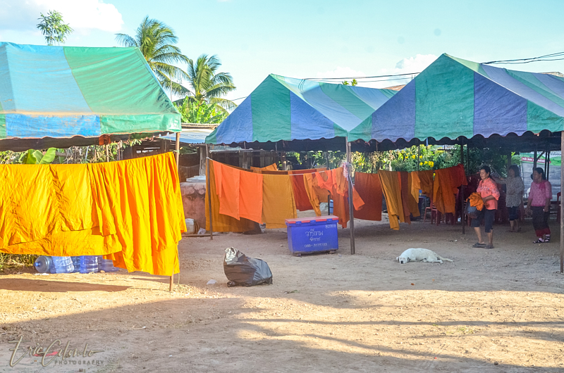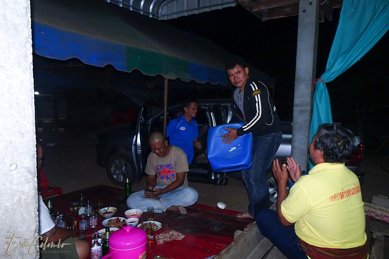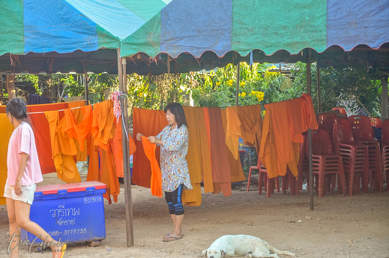 Sur les dernières images, vous voyez que la vie continue, des amies ont lavé les habits des faux moines de la veille et le soir nous fêtons le nouvel-an avec une "Moo kata" (BBQ thaïe) et, pour l'ambiance, la musique diffusée depuis une voiture parquée porte ouverte.