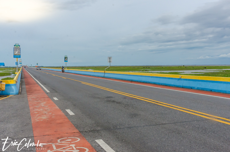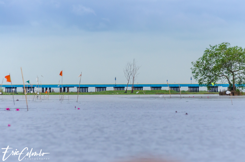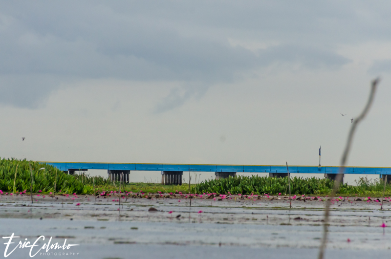 Nous avons traversé le lac jusqu’au pont Ekachai qui est le plus long pont de Thaïlande. Il part de Thale Noi, du district de Khuan Khanun, de la province de Phatthalung au district de Ranot, de la province de Songkhla. L’ancienne route en terre était constamment inondée d’où le besoin de la surélevée d’environ 5 mètres. Beaucoup de touristes prenant cette route ne peuvent s’empêcher de s’arrêter sur les nombreuses places prévues à cet effet pour prendre des photo ou admirer les buffles des marais accompagnés d’oiseaux en tout genre.