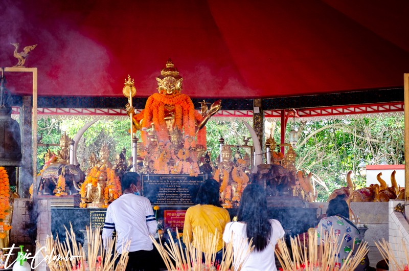 Le second temple, d’obédience brahmanique, vous permet de découvrir un grand quatre face à la statue de Brahma.