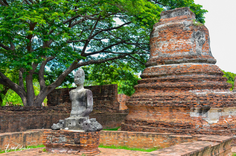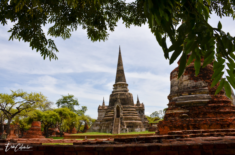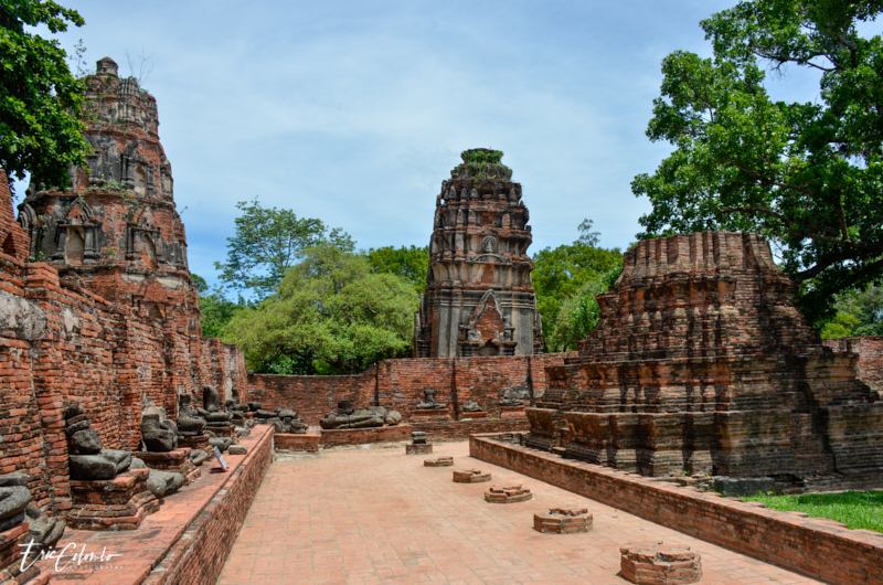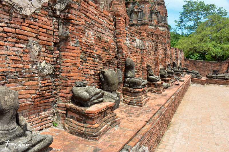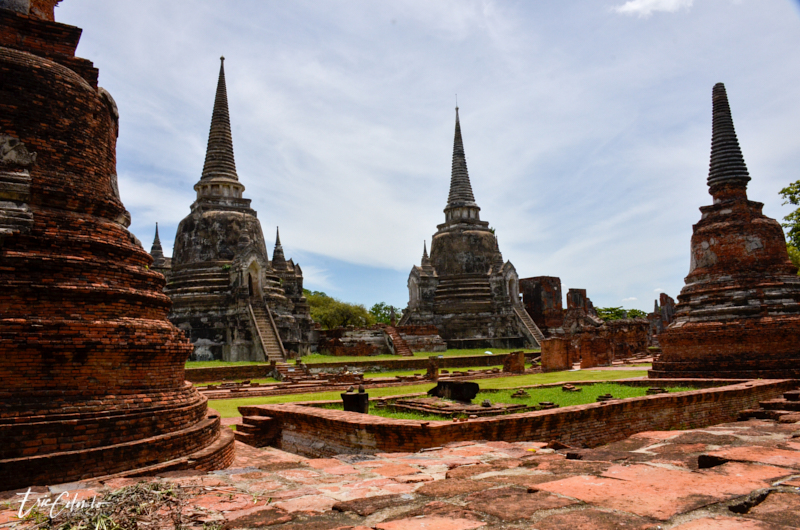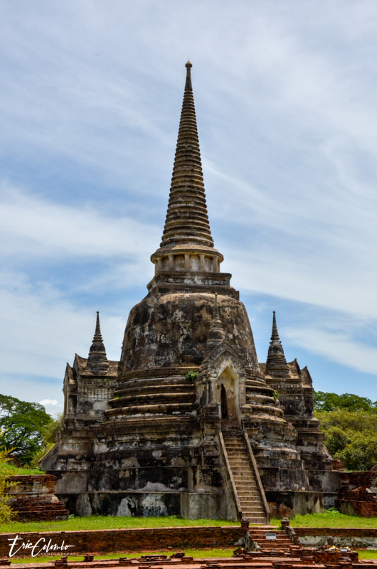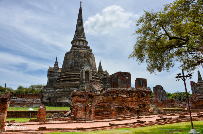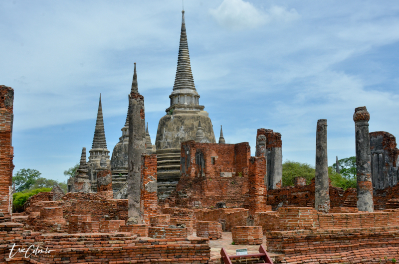 Puis les ruines du temple Wat Phra Si Sanphet qui était le temple royal, car bien qu’enclos dans une cour particulière, il était à l’intérieur de l’enceinte du Wang Luang, immédiatement au sud du palais royal (photos 11 à 23).
