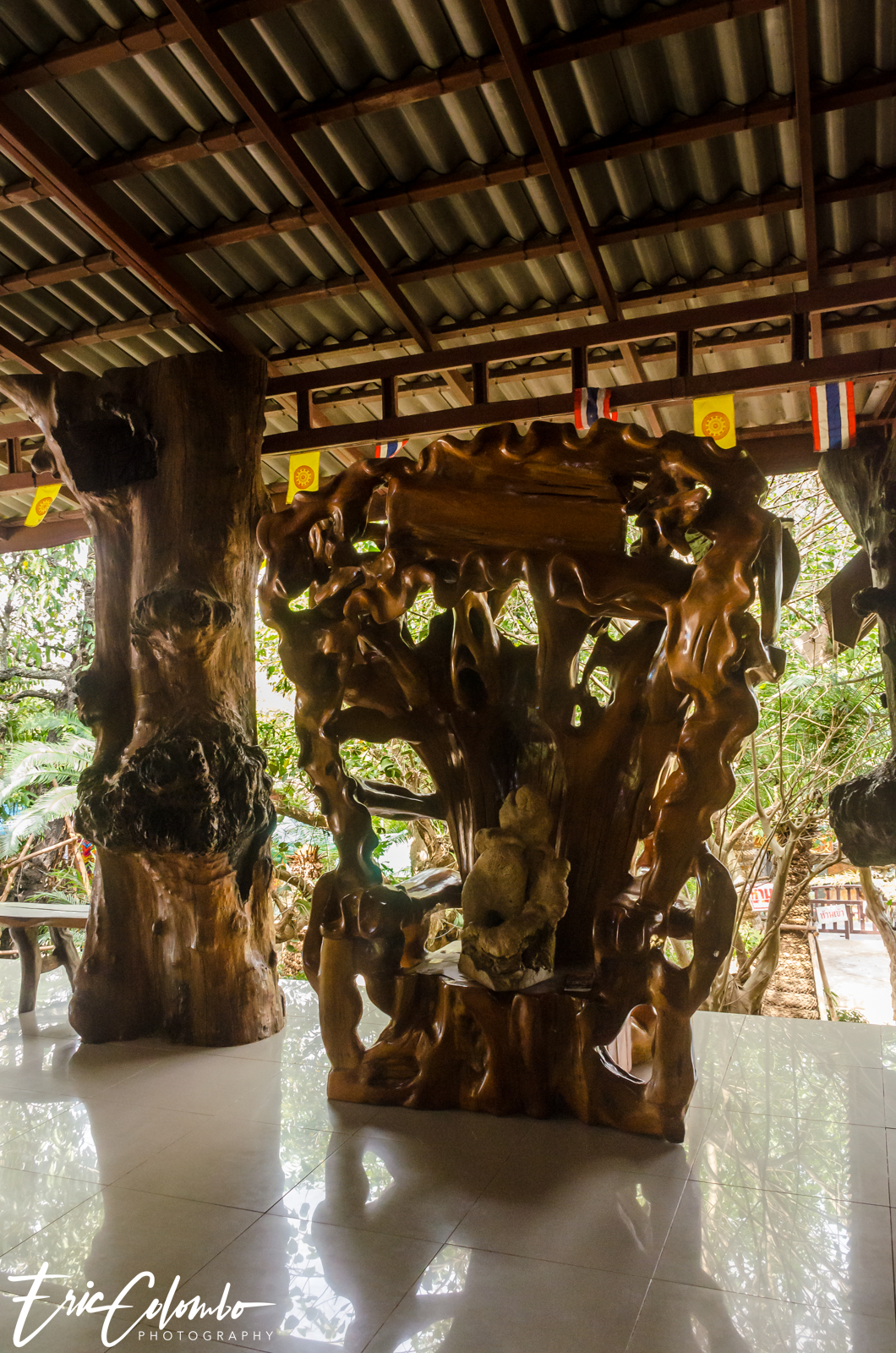 Le temple est situé sur une colline à seulement 35 minutes en voiture du centre-ville de Sakon Nakhon. Le célèbre temple offre certaines des vues les plus étonnantes de Sakon Nakhon, ainsi que les sculptures et statues bouddhistes les plus fascinantes (en bois et en pierre) en Thaïlande. C'est à bien des égards un musée thaïlandais d'art sacré, l'un des plus impressionnants que vous verrez dans le royaume. La plus part des bâtiments ont des piliers faits de troncs d’arbres anciens aux formes naturelles. L’architecture est vraiment différente des temples traditionnels thaïlandais.