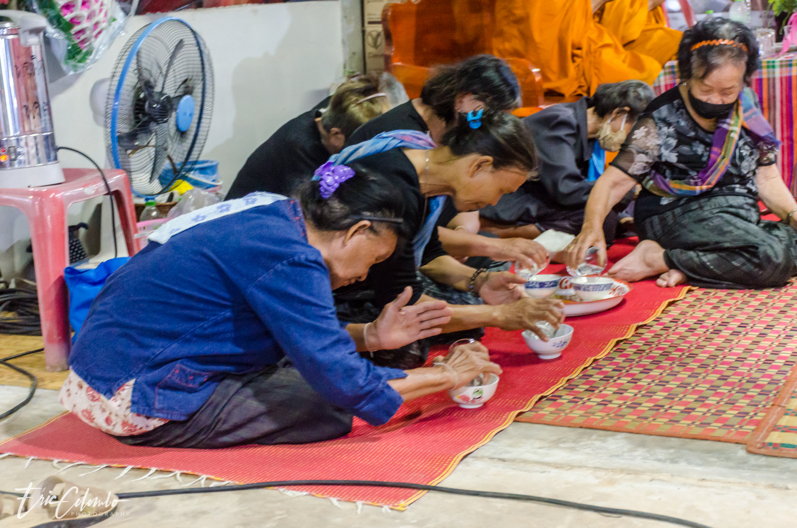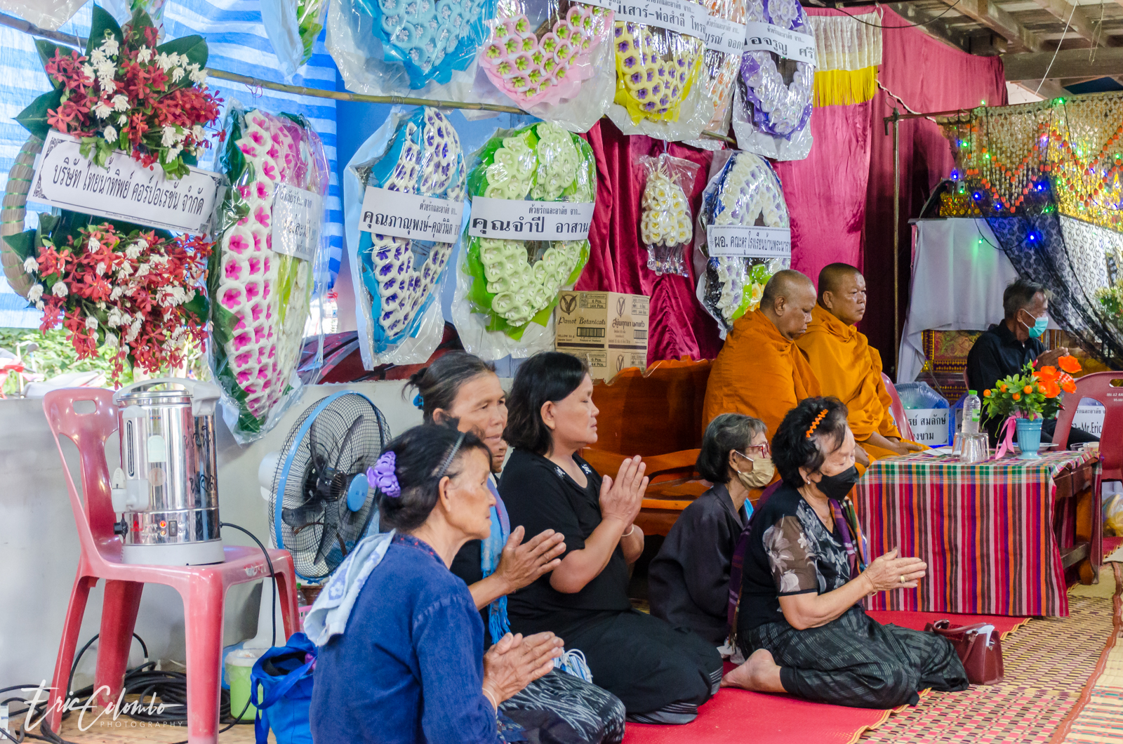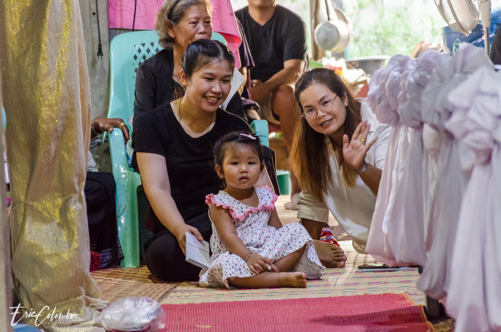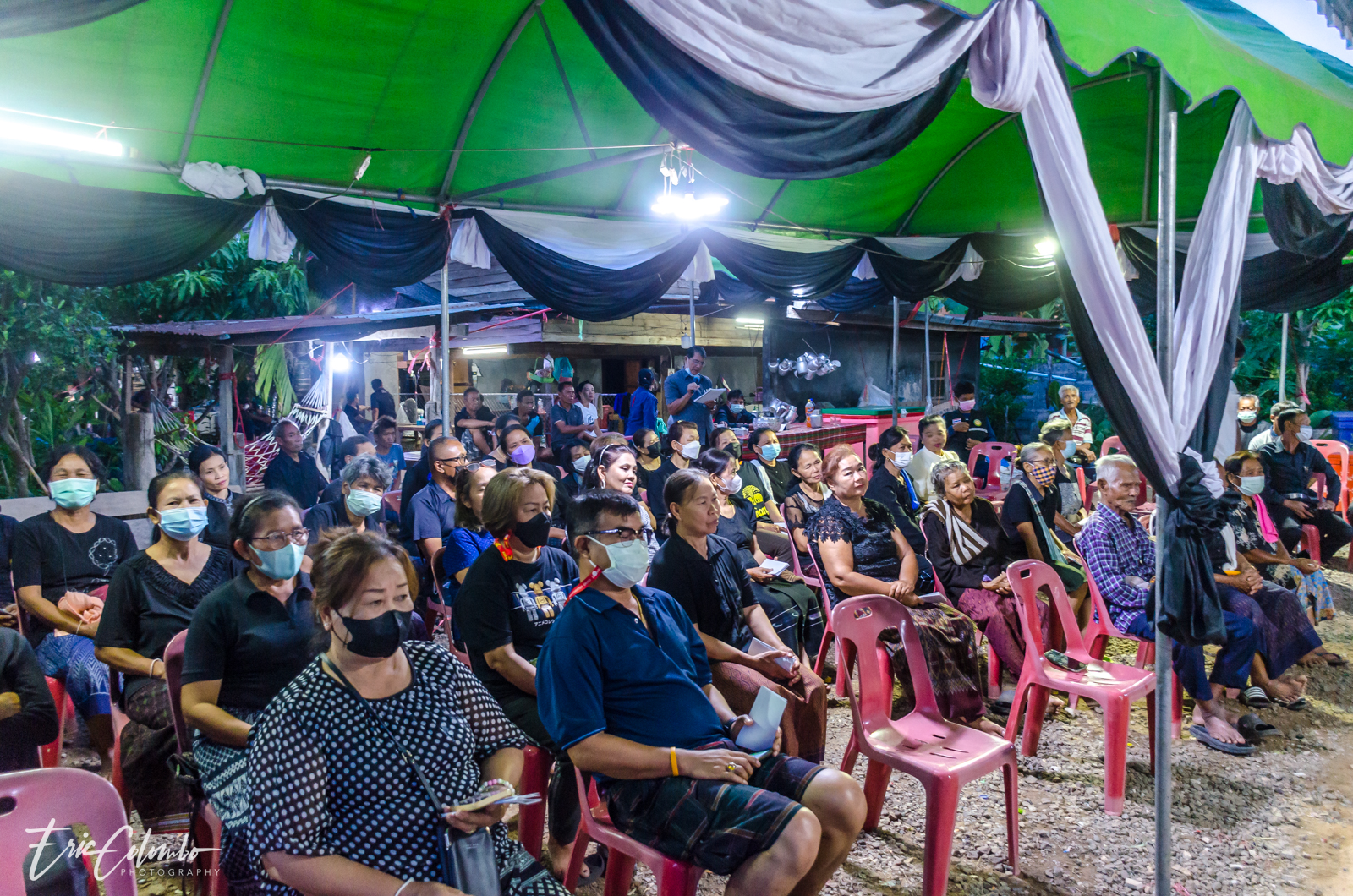 Le dimanche, tous les habitants du village, et même le maire, sont venus présenter leur condoléances et offrir des dons à la famille et, bien sûr, aux 4 moines qui dirigeaient les prières du soir. Les abris érigés devant la maison permettaient d'offrir un repas à tous les visiteurs.