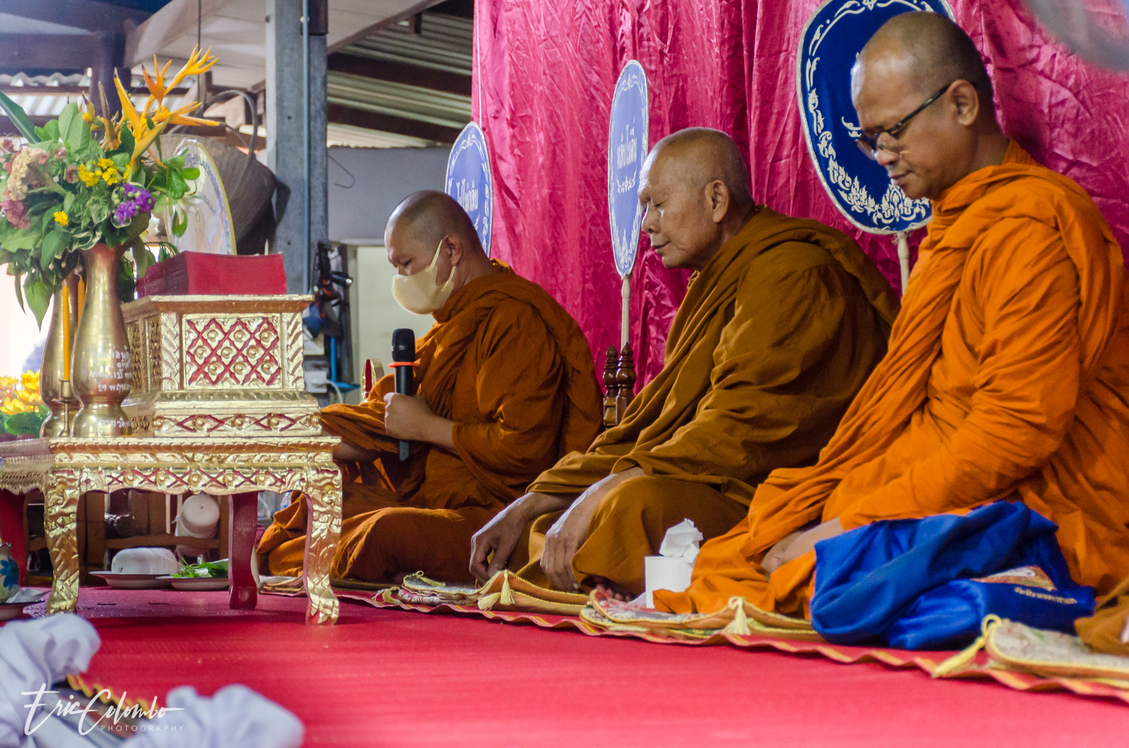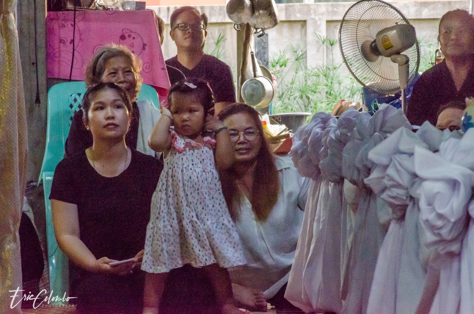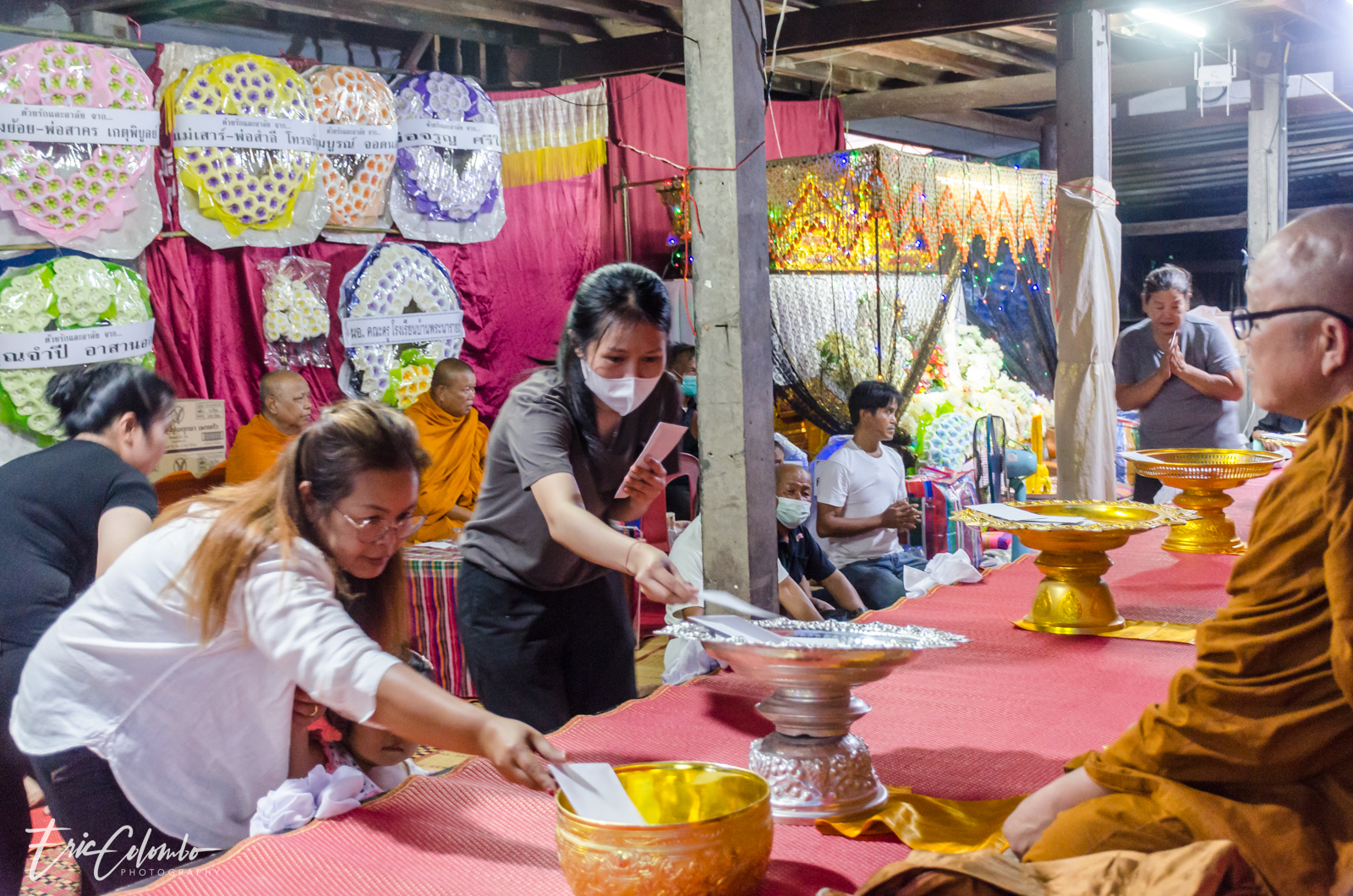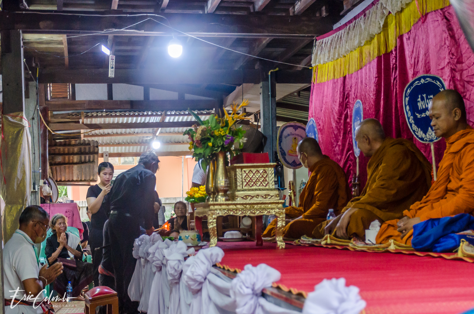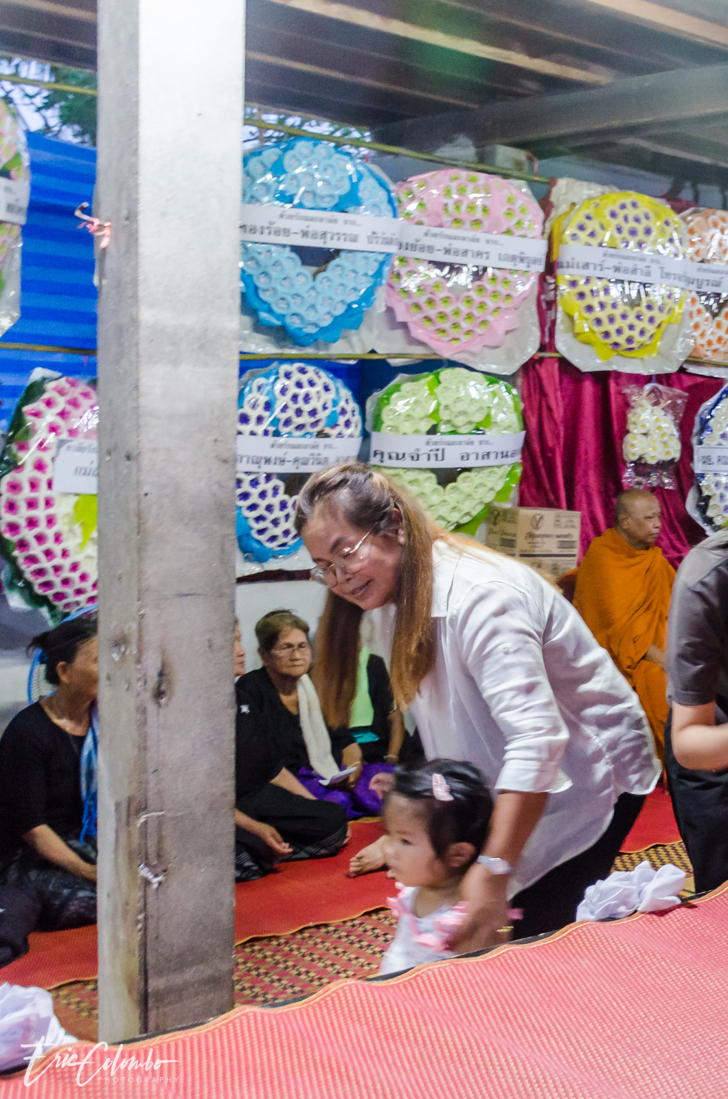 Le dimanche, tous les habitants du village, et même le maire, sont venus présenter leur condoléances et offrir des dons à la famille et, bien sûr, aux 4 moines qui dirigeaient les prières du soir. Les abris érigés devant la maison permettaient d'offrir un repas à tous les visiteurs.