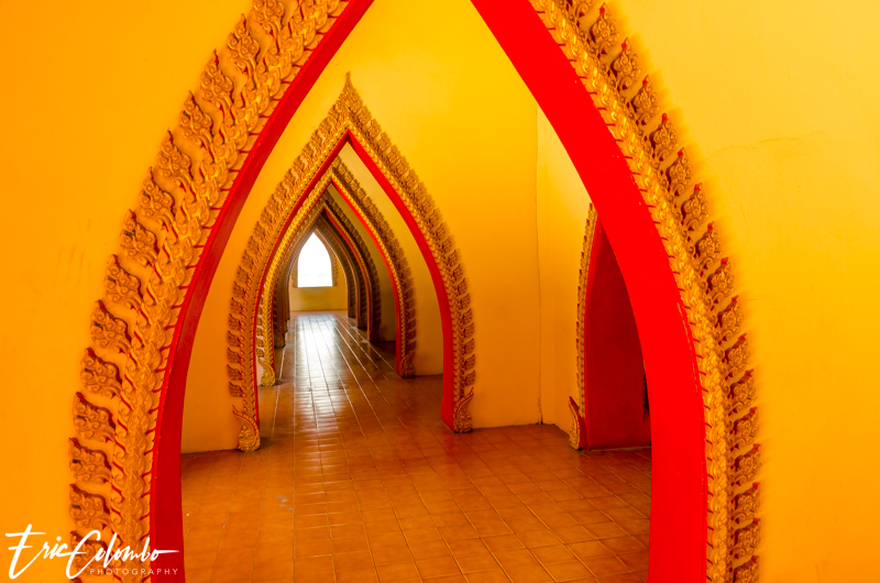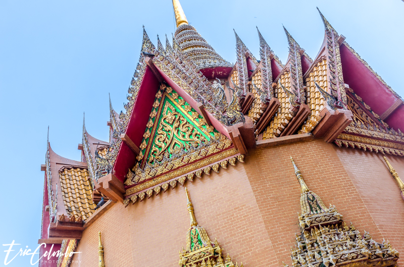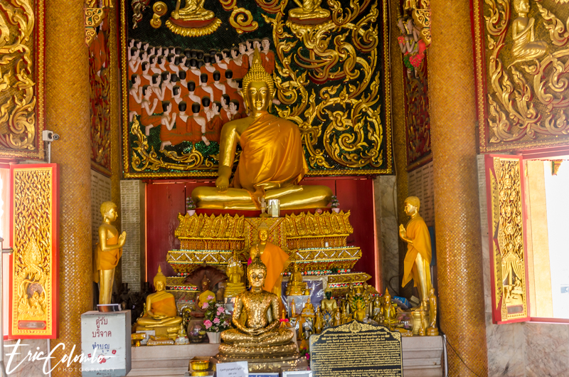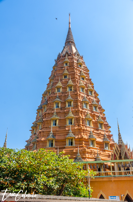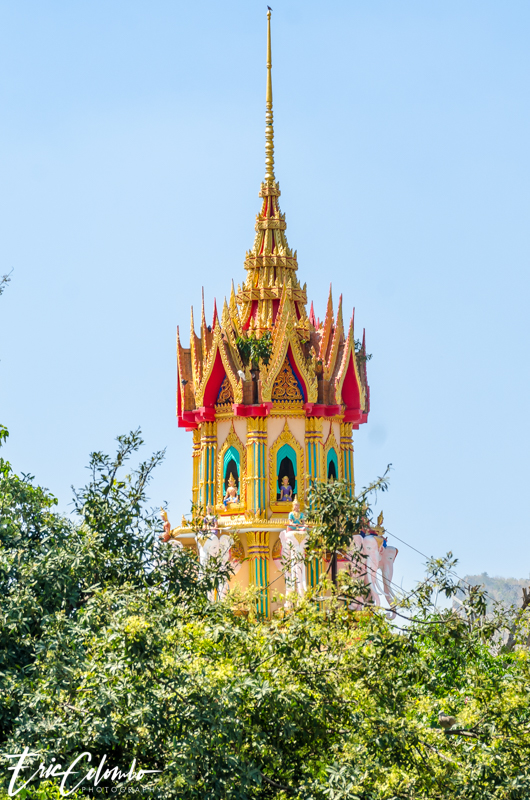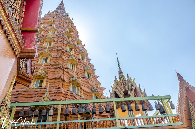 Il y a une montée de 157 marches pour accéder au temple ou on peut emprunter un petit funiculaire. Là-haut, les vues à 360 degrés sur les environs et leurs rizières sont superbes. L'autre élément important du temple est son chedi de 7 étages assez atypique dans lequel je vous conseille de monter au moins pour la vue sur le Bouddha depuis les fenêtres.