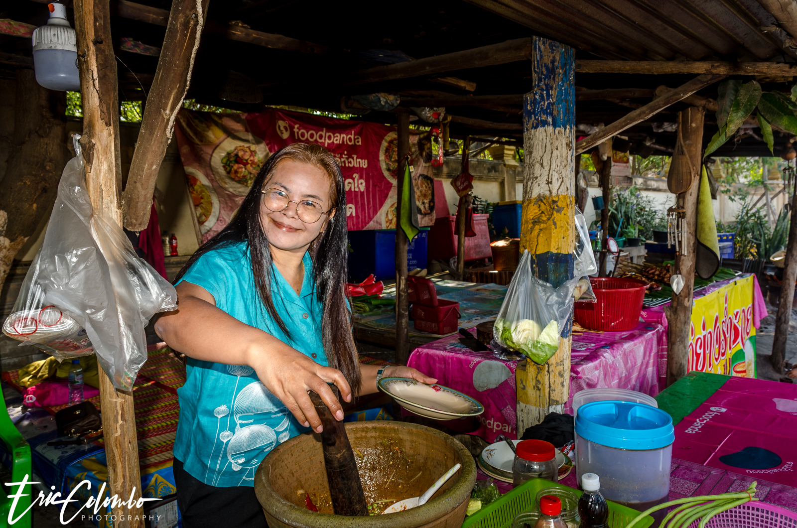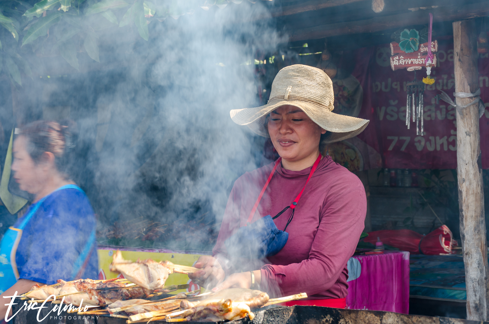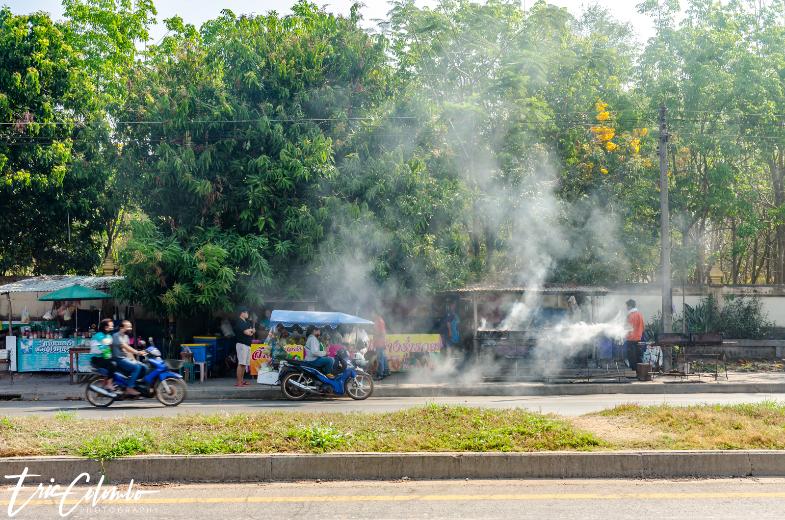 Notre premier projet de visite est le temple Phra That Phanon. Un peu avant ce magnifique site, nous nous sommes arrêtés, pour un petit déjeuné, à un stand de « Street Food » tenu par une amie qui a vécu longtemps à Phuket.