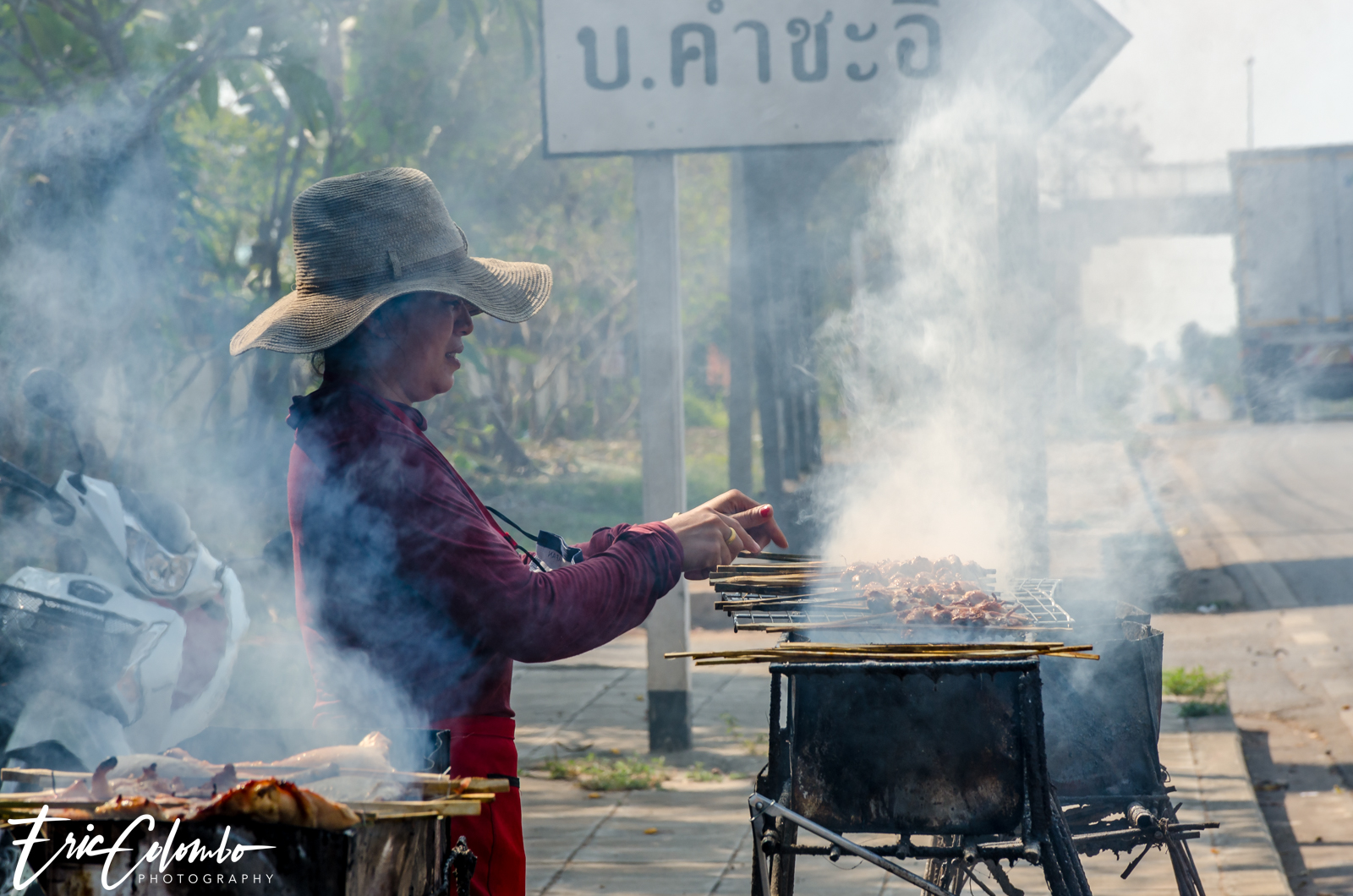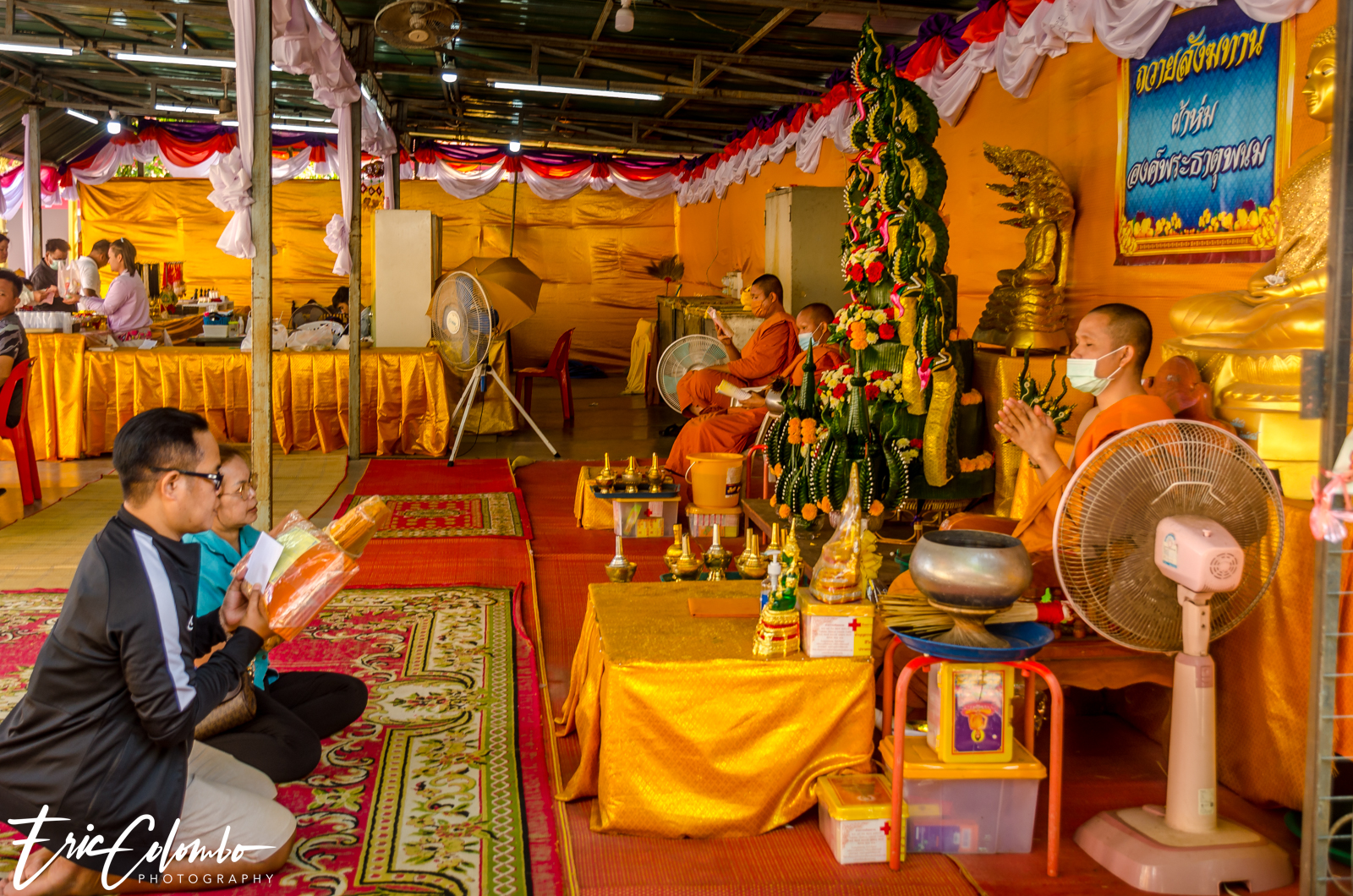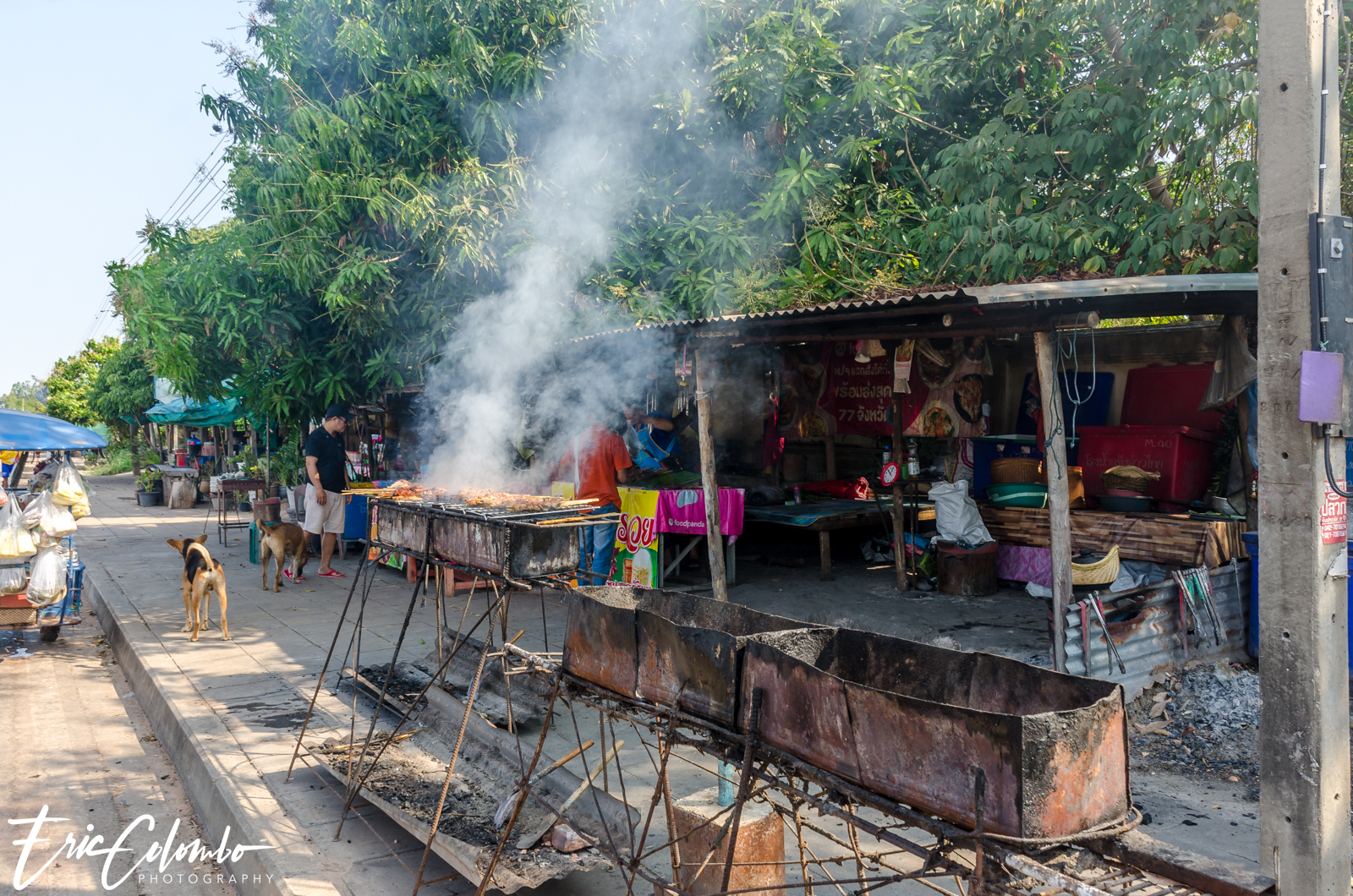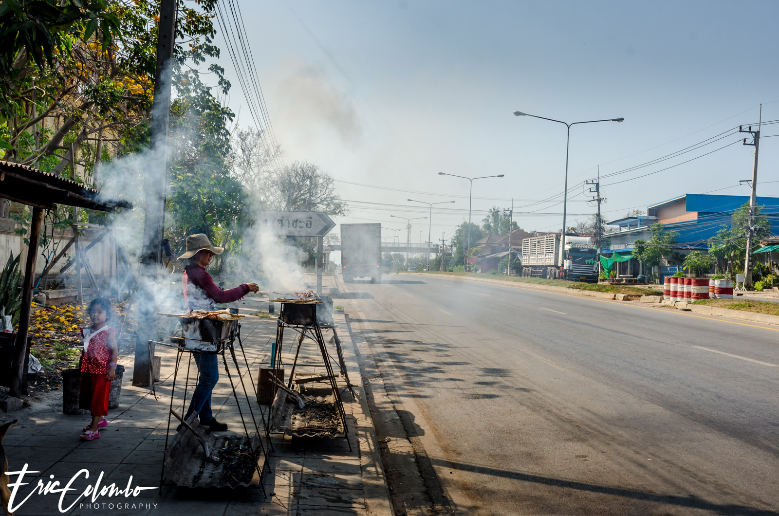 Notre premier projet de visite est le temple Phra That Phanon. Un peu avant ce magnifique site, nous nous sommes arrêtés, pour un petit déjeuné, à un stand de « Street Food » tenu par une amie qui a vécu longtemps à Phuket.